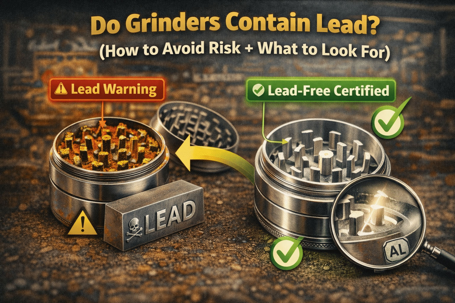 This guide breaks down where lead comes from, which grinders are highest risk, and how to spot safe vs sketchy metal before you ever grind flower.