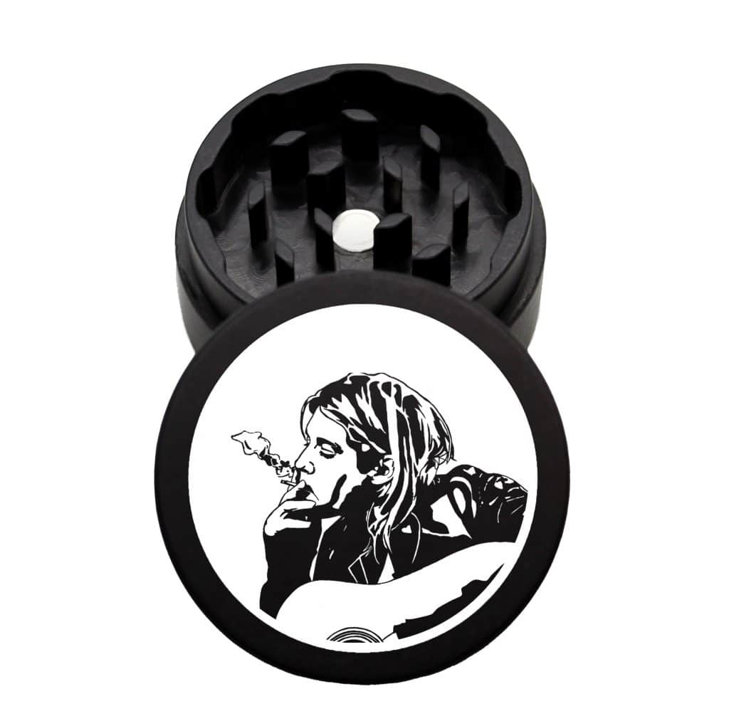 Product Name: The Puck® 2 Piece Mini Grinder Introducing The Puck® 2 Piece Mini Grinder, a compact powerhouse that packs a punch in a smaller size. Measuring at just 1.75 inches in diameter, this miniature version of our popular The Puck® 2 Piece Grinder offers enhanced portability without compromising on performance. Held together by a … Continue reading USA Made The Puck® Grinder: Kurt Cobain, Black, 1.750 [45mm], 2 Piece