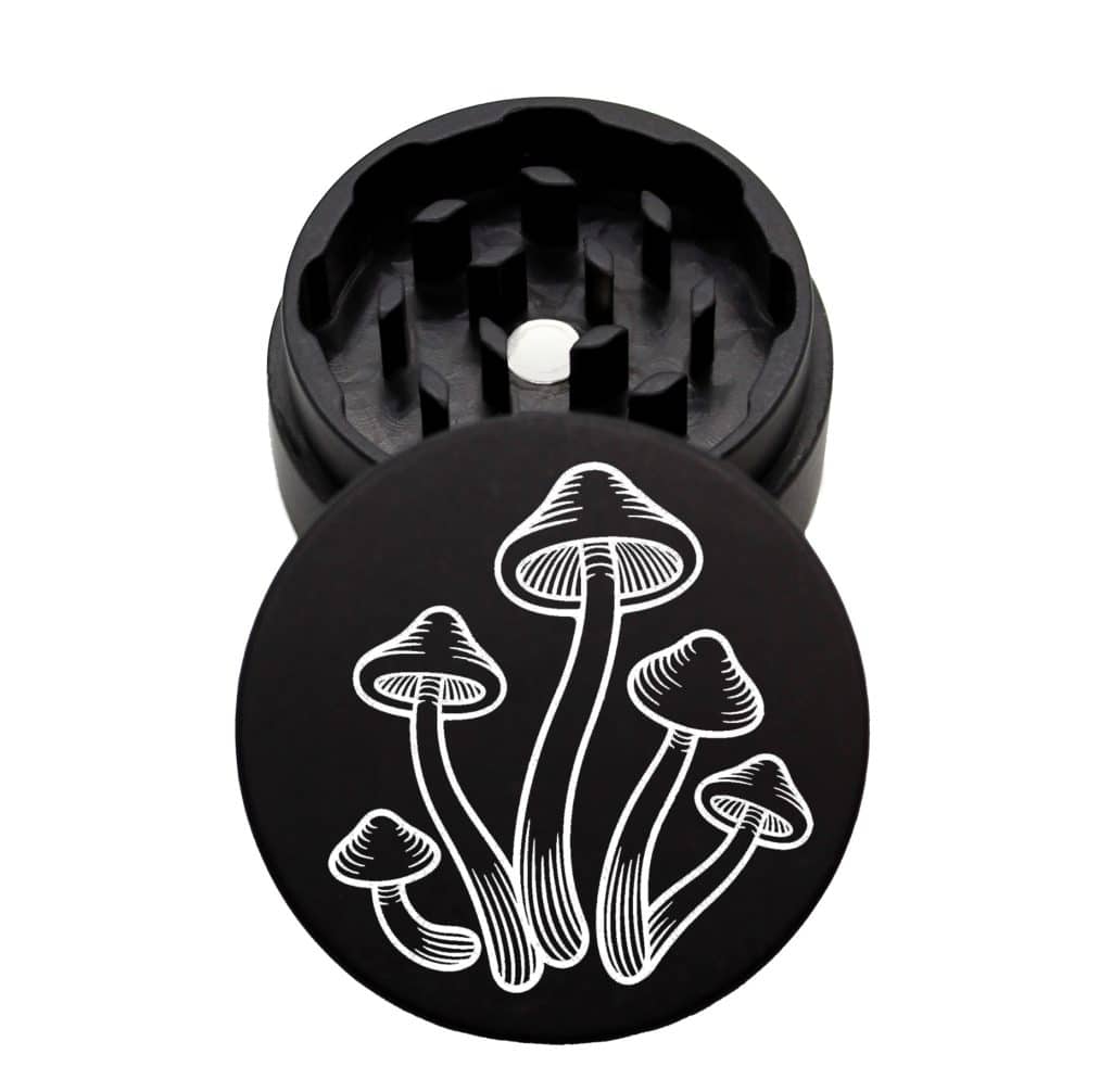 Product Name: The Puck® 2 Piece Mini Grinder Introducing The Puck® 2 Piece Mini Grinder, a compact powerhouse that packs a punch in a smaller size. Measuring at just 1.75 inches in diameter, this miniature version of our popular The Puck® 2 Piece Grinder offers enhanced portability without compromising on performance. Held together by a … Continue reading USA Made The Puck® Grinder: Mushrooms, Black, 1.750 [45mm], 2 Piece