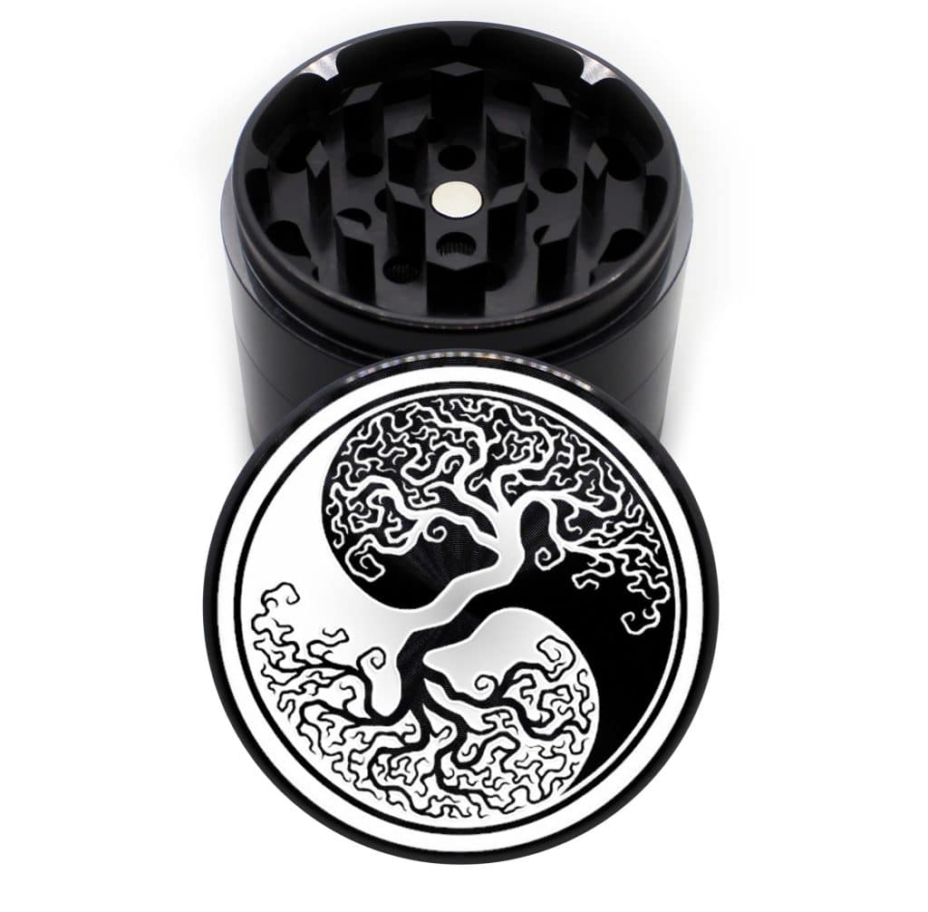 Product Name: 4 Piece 2.5 Inch (63mm) Grinder Introducing our 4 Piece 2.5 Inch (63 mm) Grinder, a portable powerhouse designed to deliver exceptional grinding performance wherever you go. This globally sourced grinder offers the same outstanding features found in our USA-made collection, ensuring quality and functionality in a 4 piece configuration. Made with … Continue reading Grinder: Yin Yang & Tree Of Life, Black, 63mm, 4-piece