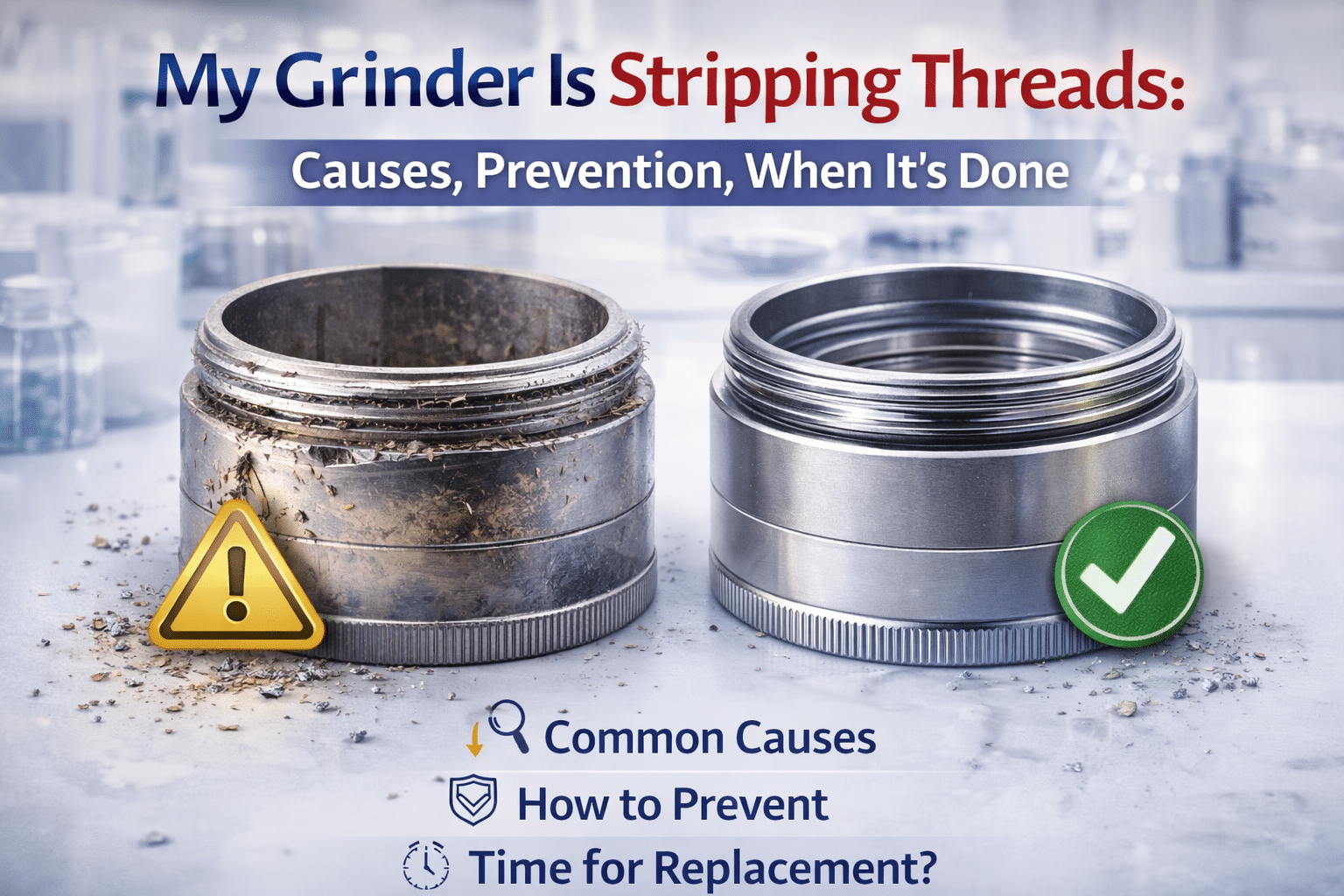 Thread stripping is one of the most frustrating grinder failures because it doesn’t happen all at once. It starts subtly — a lid that feels gritty, a catch that doesn’t seat cleanly — and then suddenly the grinder won’t stay together, cross-threads constantly, or spins forever without tightening.