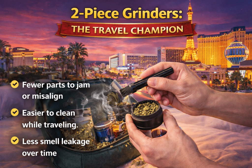 This simplicity is exactly why 2-piece grinders remain the top choice for discreet travel setups.