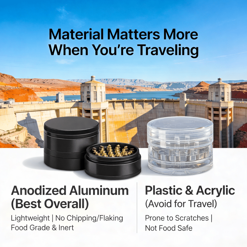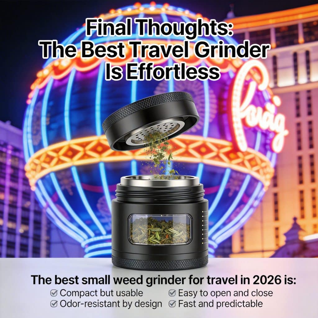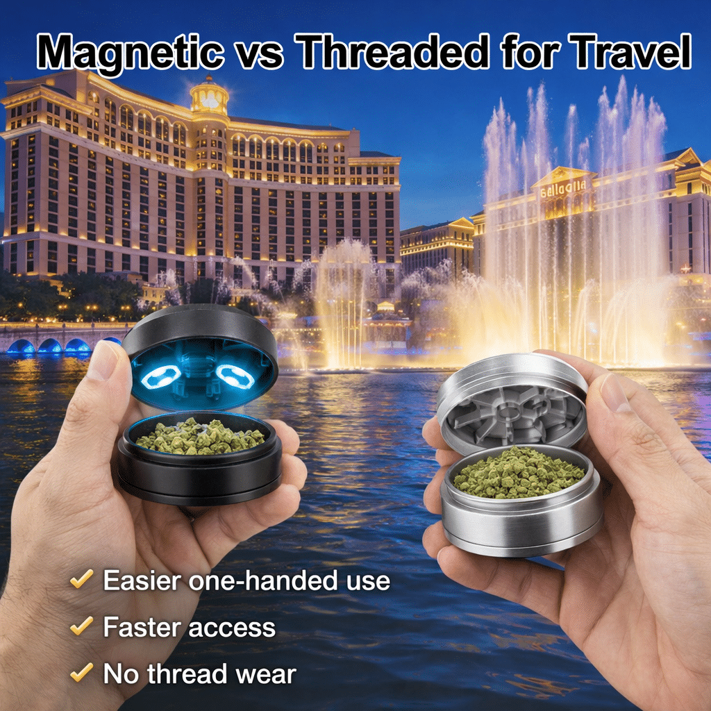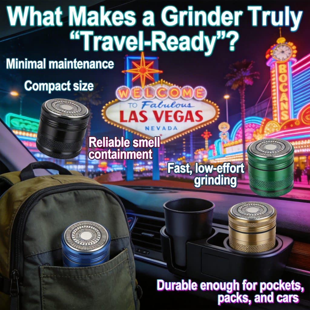 When you’re traveling, grinding weed is less about perfection and more about control, discretion, and speed. You want something that fits in a pocket, doesn’t stink up your bag, works fast, and doesn’t jam the moment you hit a sticky nug.