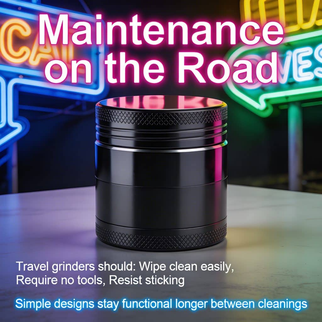 Avoid grinders that pulverize flower—fine grind creates mess and harsh hits when you’re on the move.