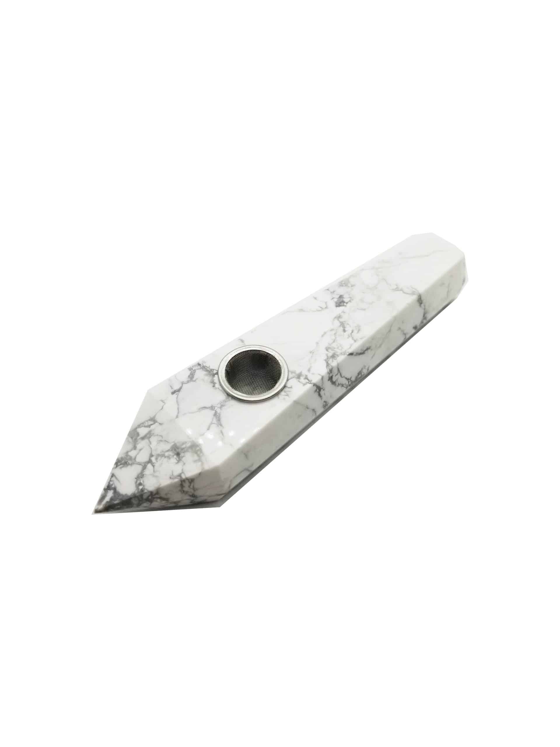 White Turquoise Gemstone Pipe with Screen (Style #14)