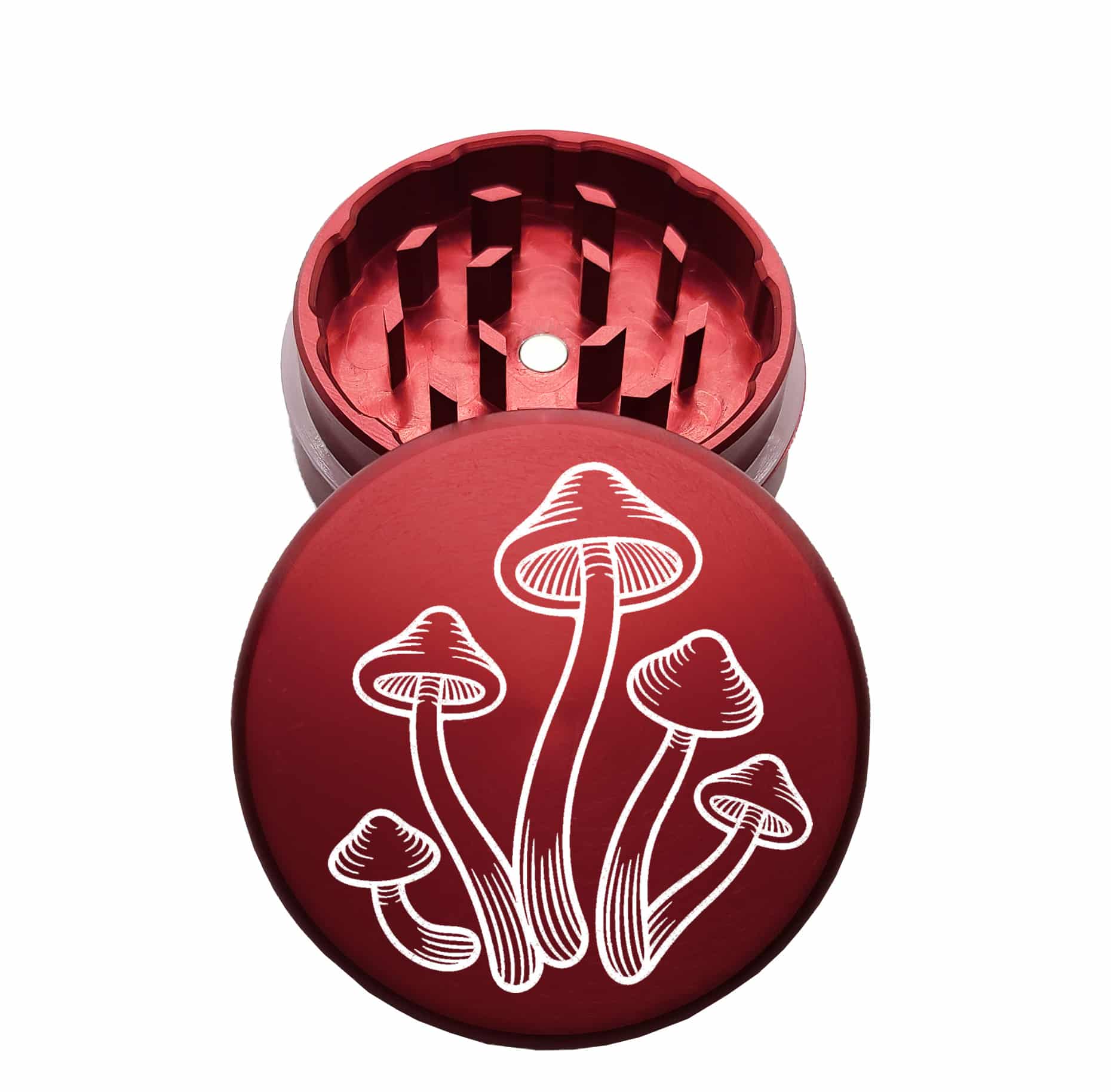 USA Made: Mushrooms, The Puck® Grinder, Gen II, Red, 63mm, 2-Piece