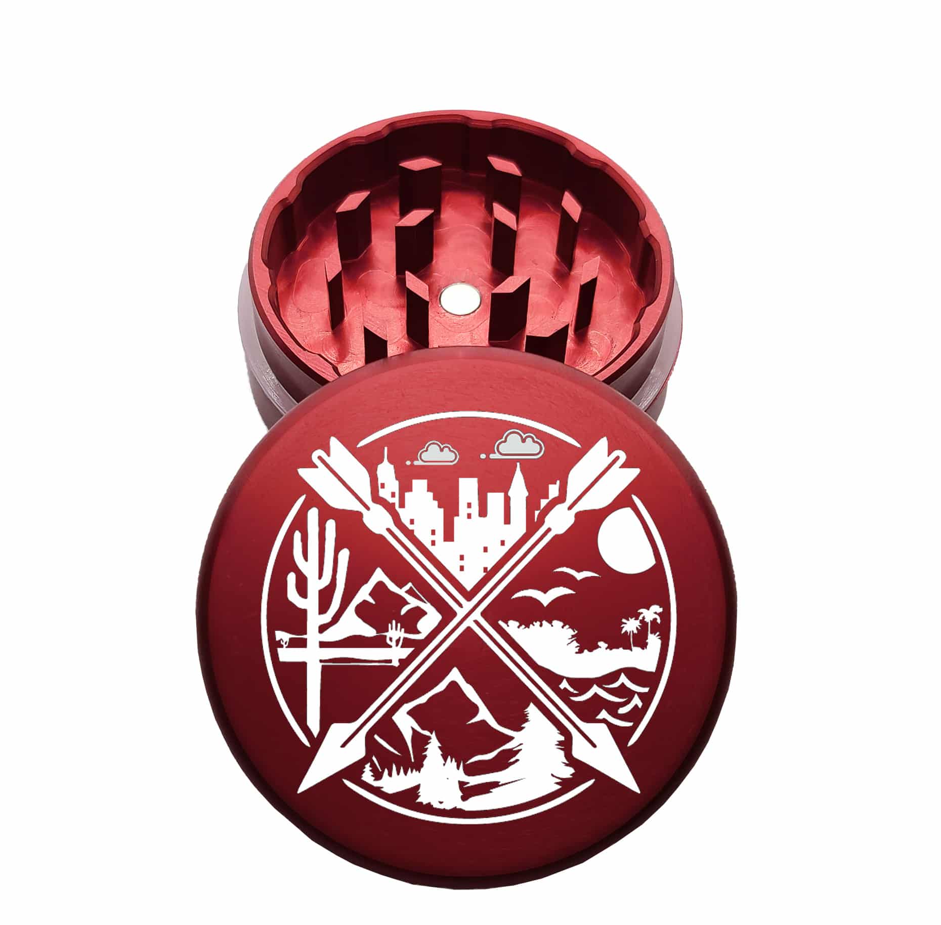 USA Made: NSEW, The Puck® Grinder, Gen II, Red, 63mm, 2-Piece