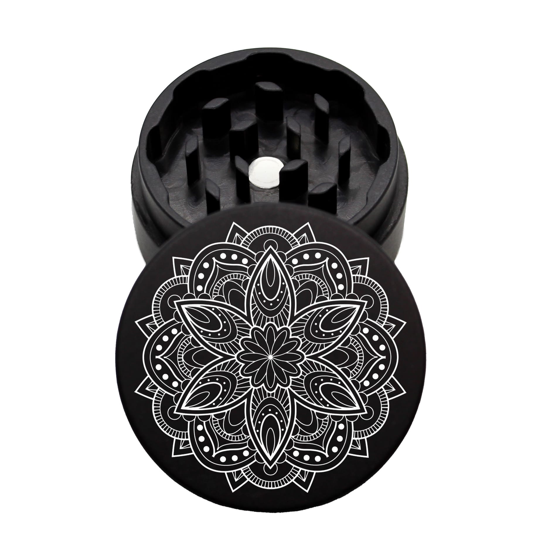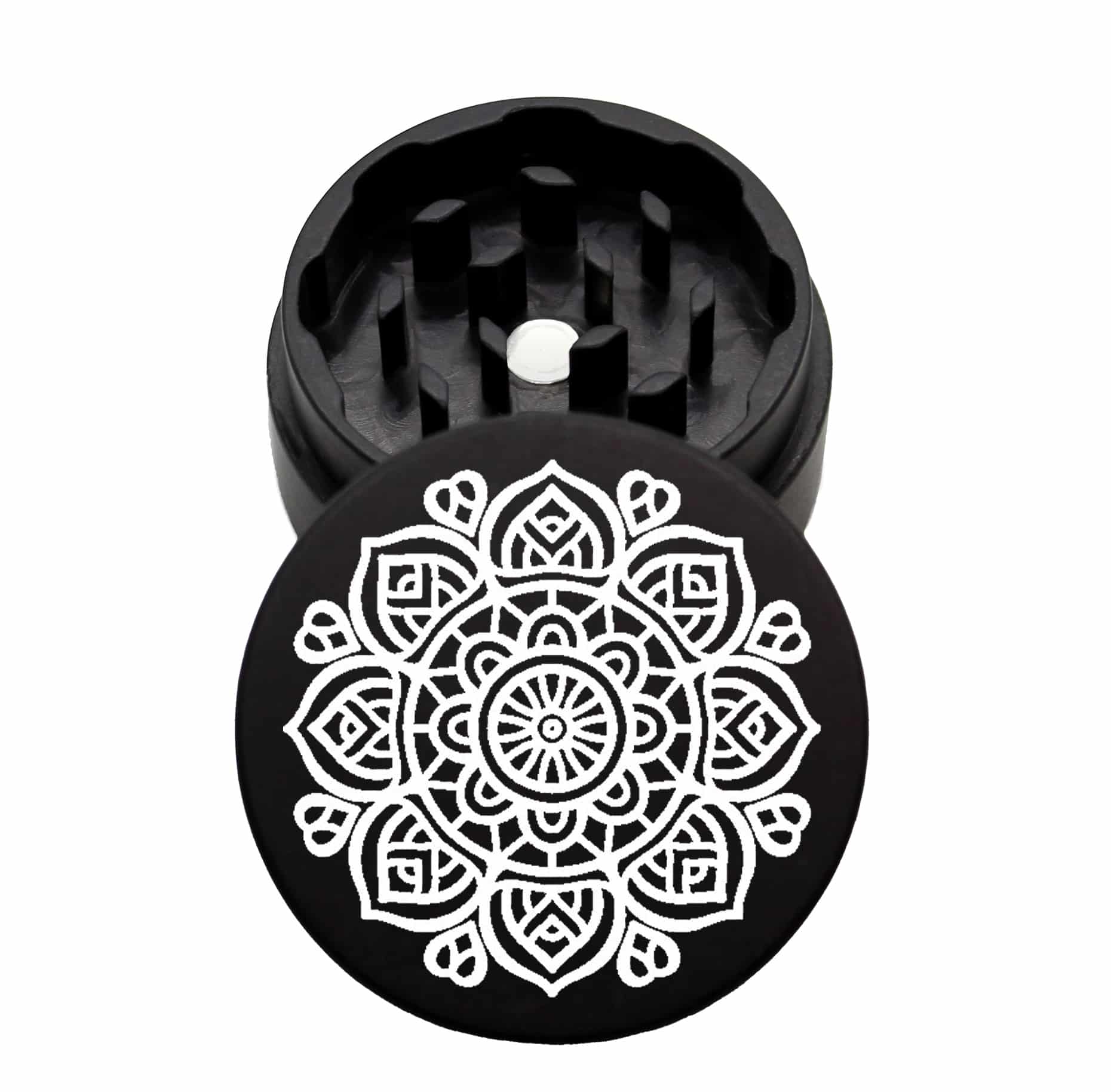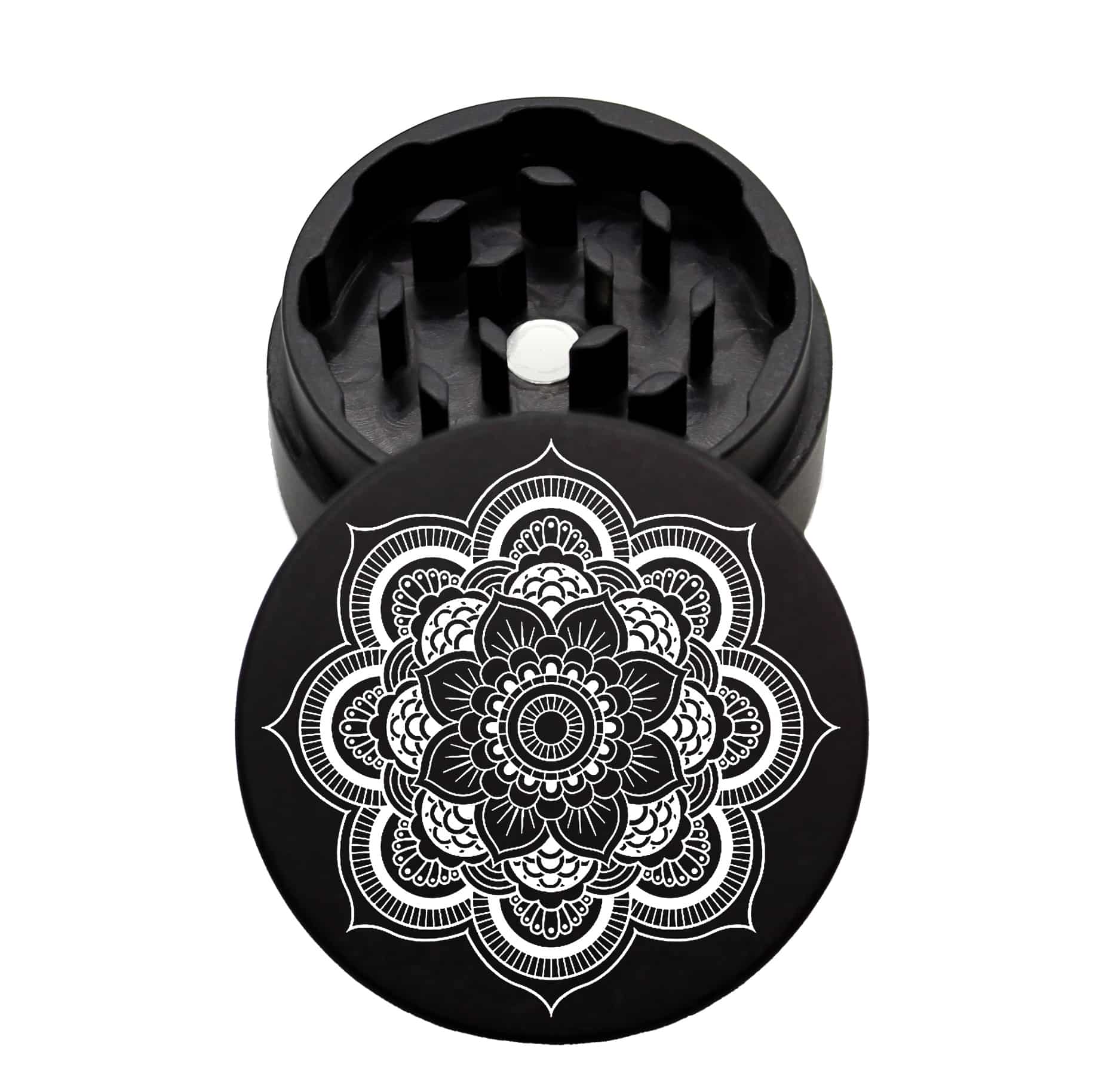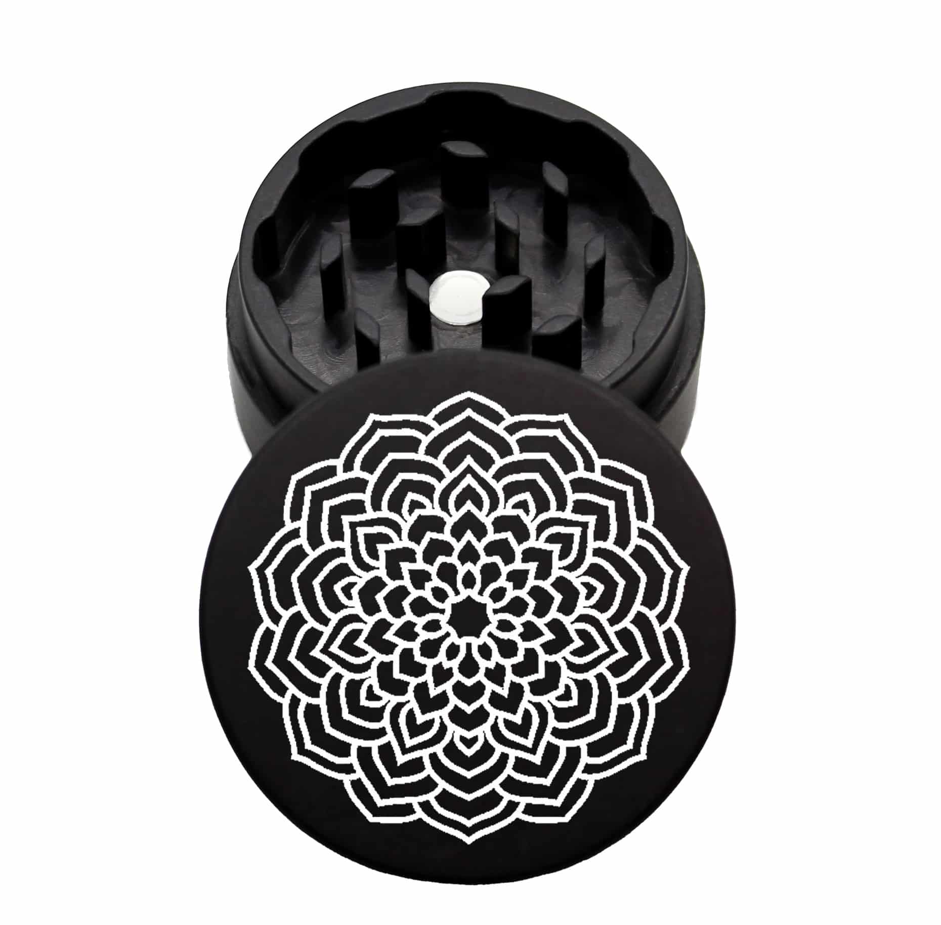 USA Made The Puck® Grinder: Zinnia Mandala, Black, 1.750 [45mm], 2 Piece