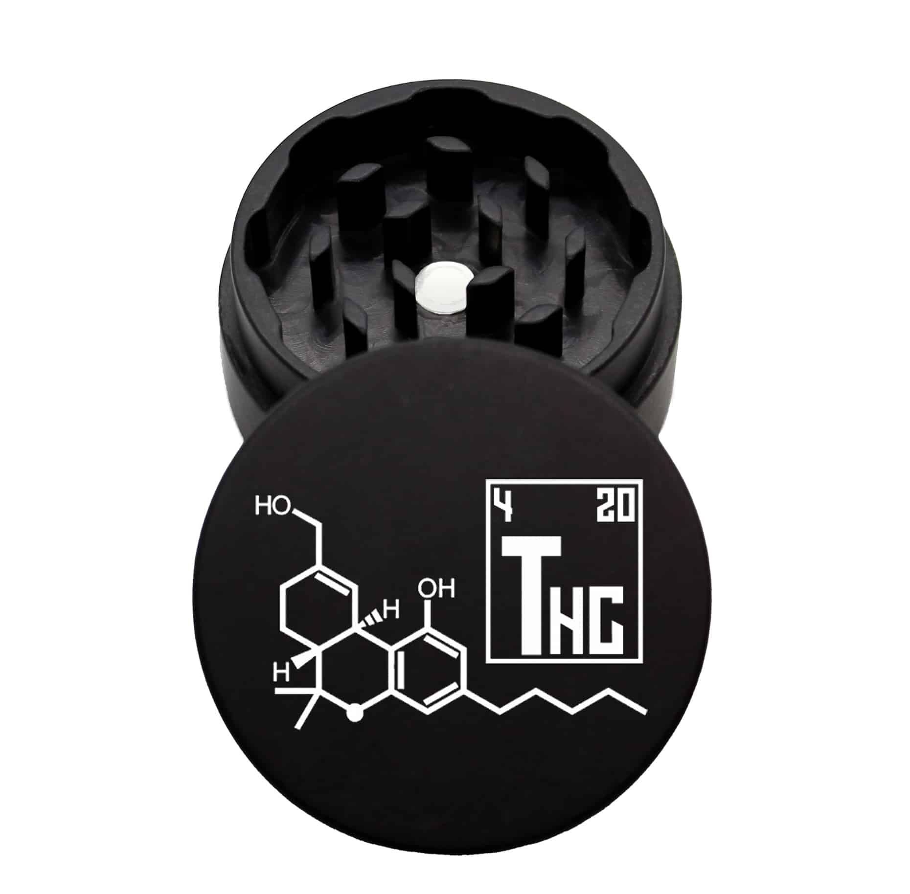 USA Made The Puck® Grinder: THC Molecule , Black, 1.750 [45mm], 2 Piece