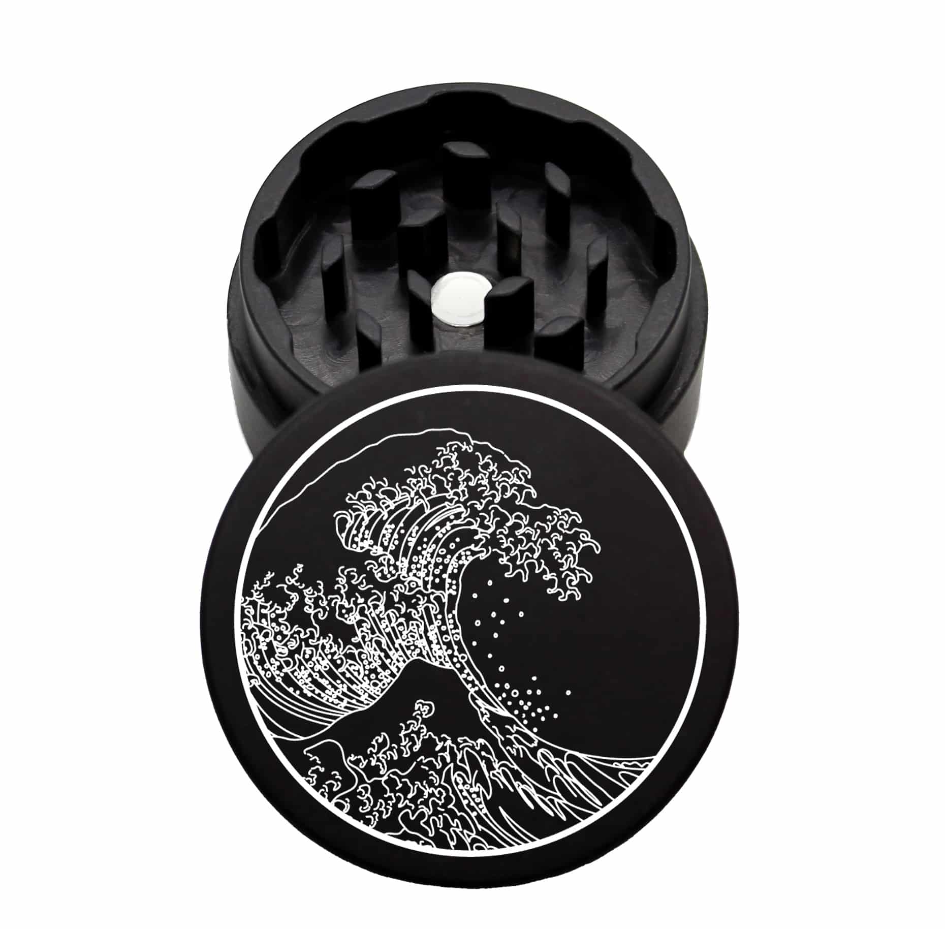 USA Made The Puck® Grinder: The Great Wave Off Kanagawa, Black, 1.750 [45mm], 2 Piece