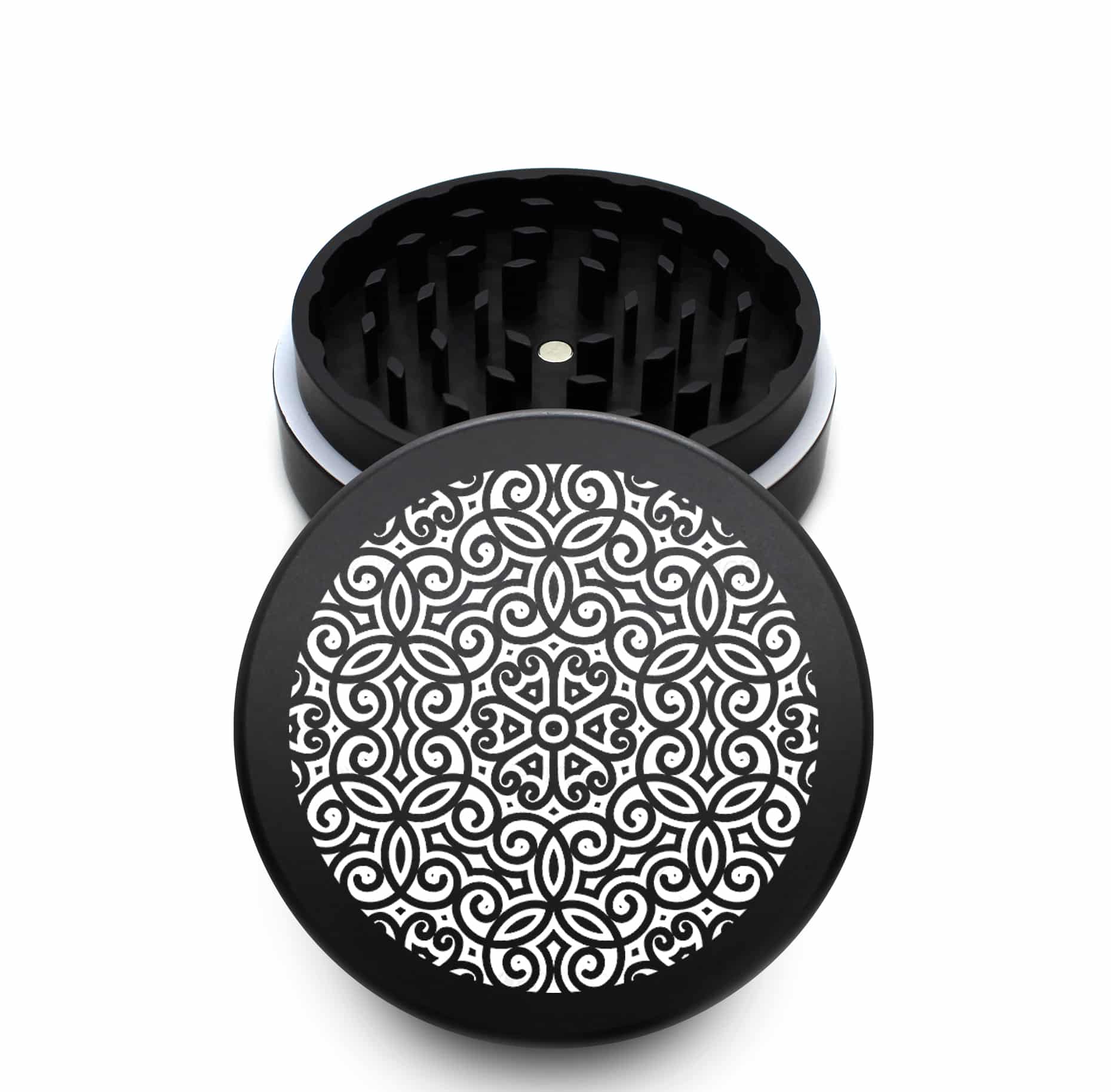 USA Made The Puck® Grinder: Royal Mandala, Black, 3.500 inch [90mm], 2 Piece