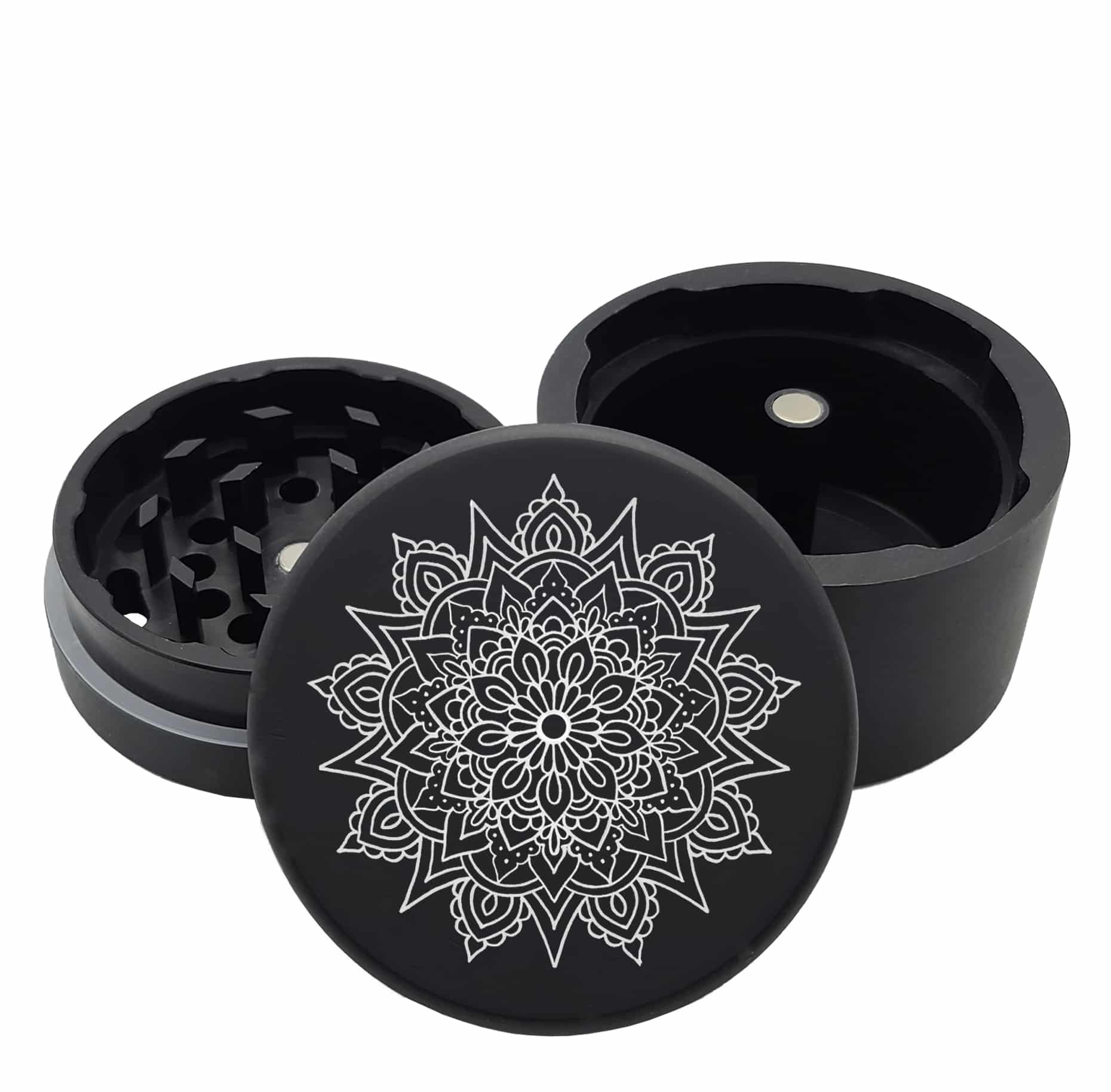 USA Made The Puck® Grinder: Horned Owl Mandala – 90mm Black Metal Weed Crusher (3-Piece)