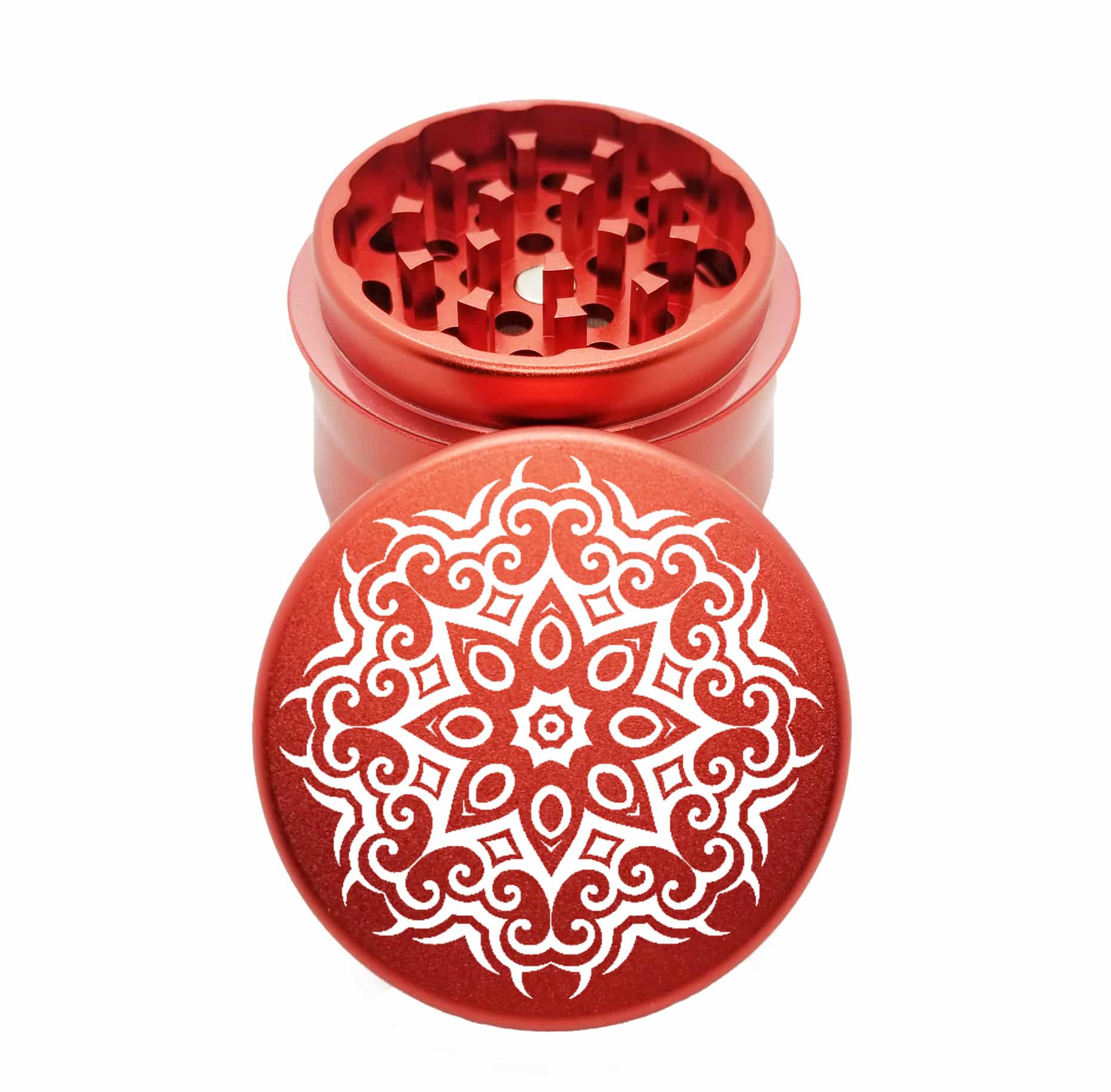 8PT Mandala Red Mini Herb Grinder – Metal Weed Crusher