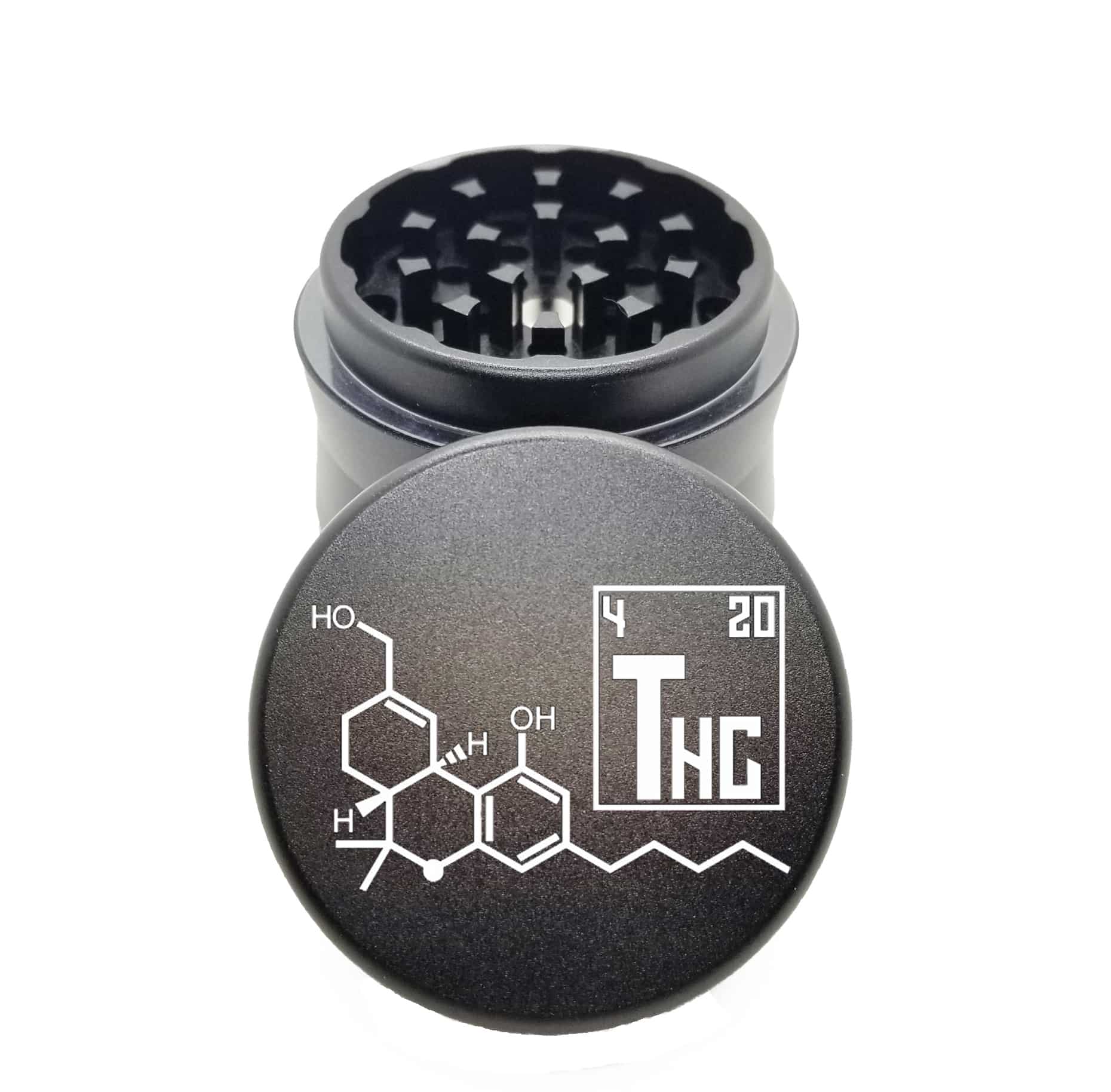 THC Molecule Black Mini Herb Grinder – Compact Weed Crusher