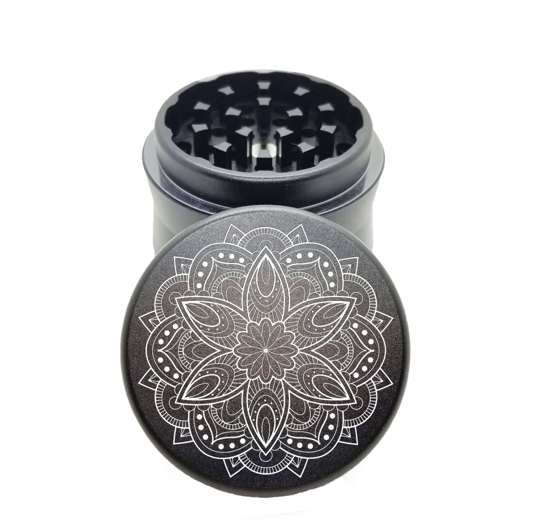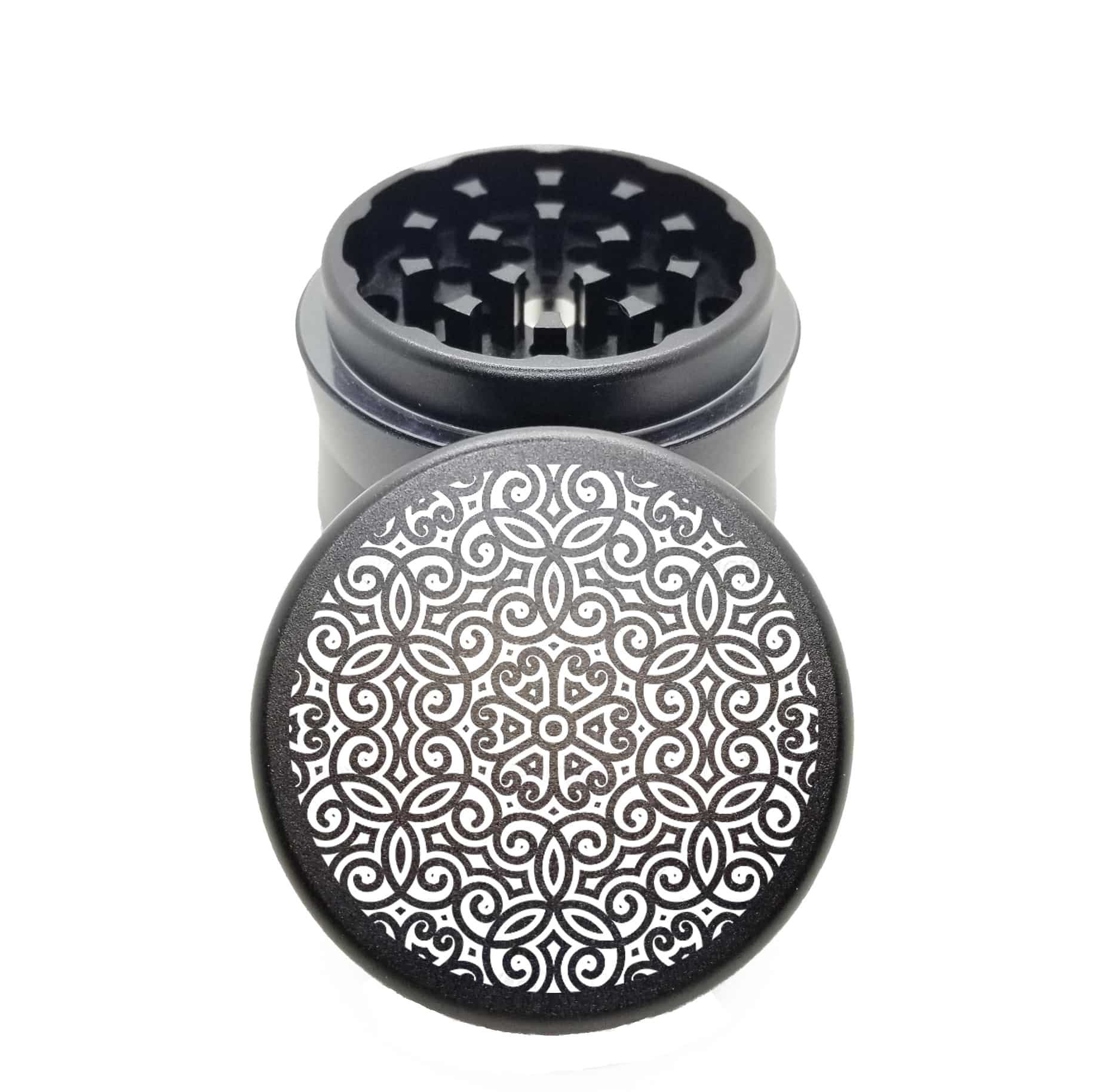 Rose Mandala Black Pocket Weed Grinder – Small 4 Piece Herb Grinder