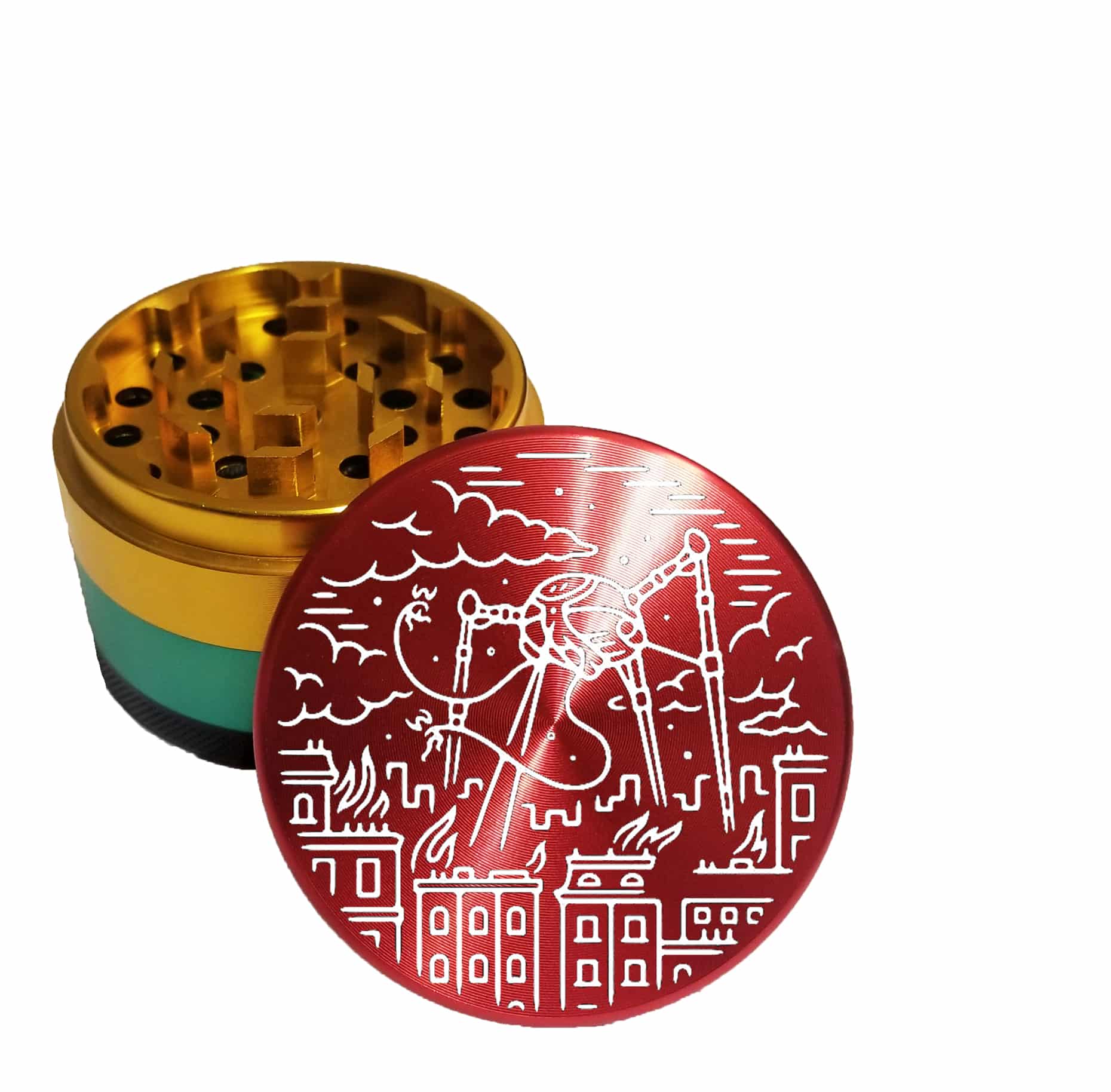 Aliens Rasta Color 63mm Herb Grinder – Top Rated Aluminum Weed Crusher