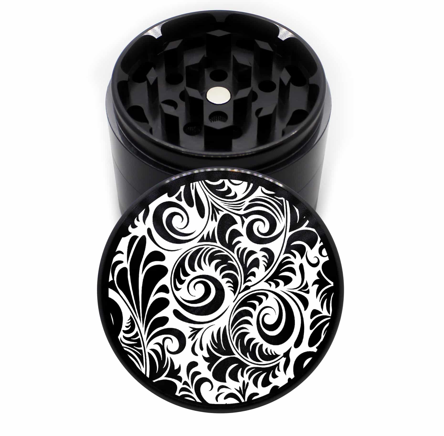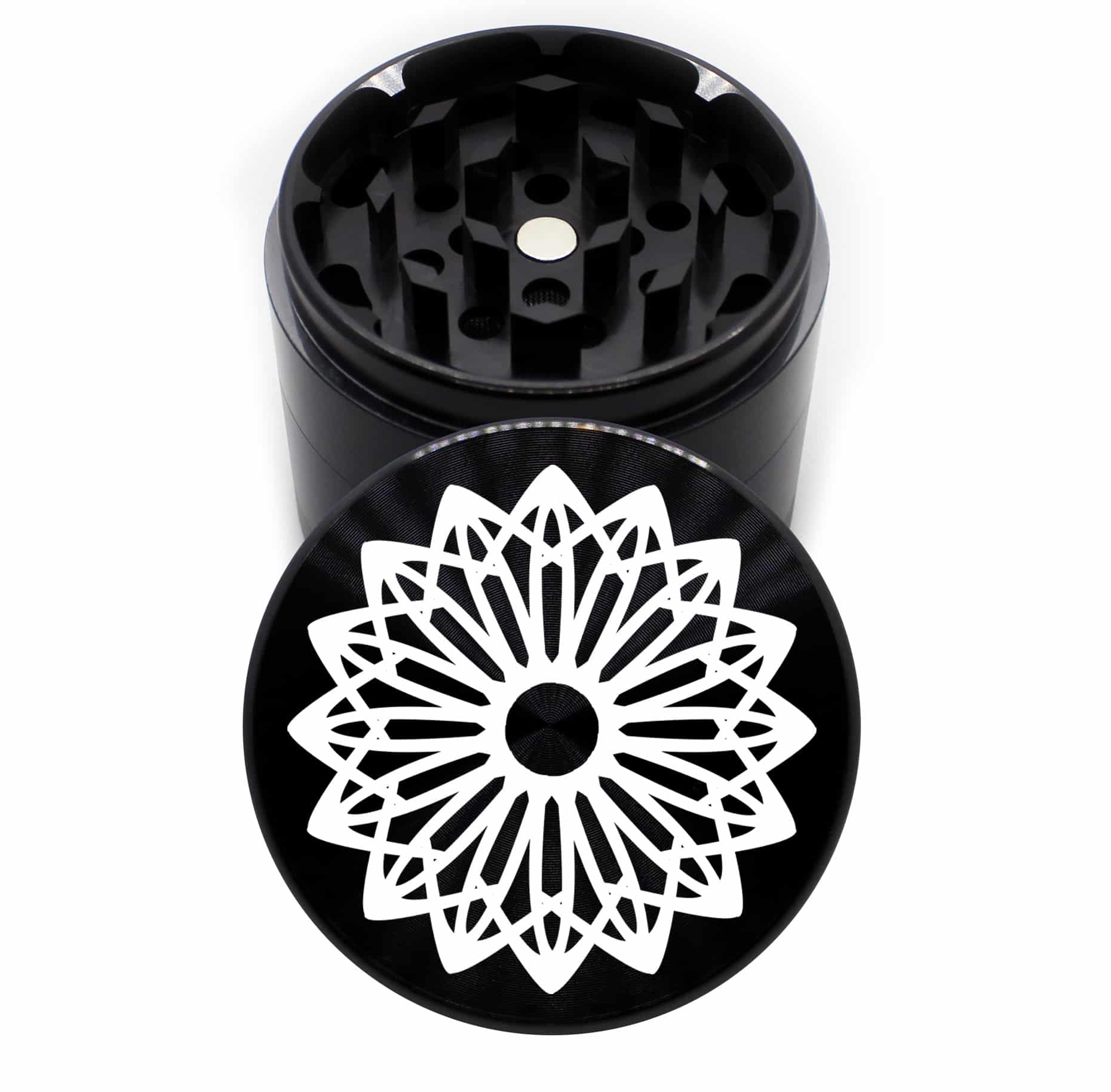 Amaryllis Mandala 63mm Black CNC Cannabis Grinder – 4 Piece