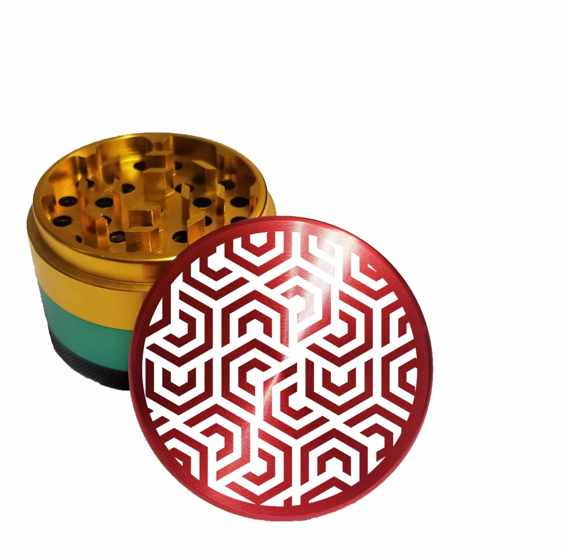 Hexomatic 2.5″ Rasta Edition Herb Grinder – Large Kief Catcher Crusher