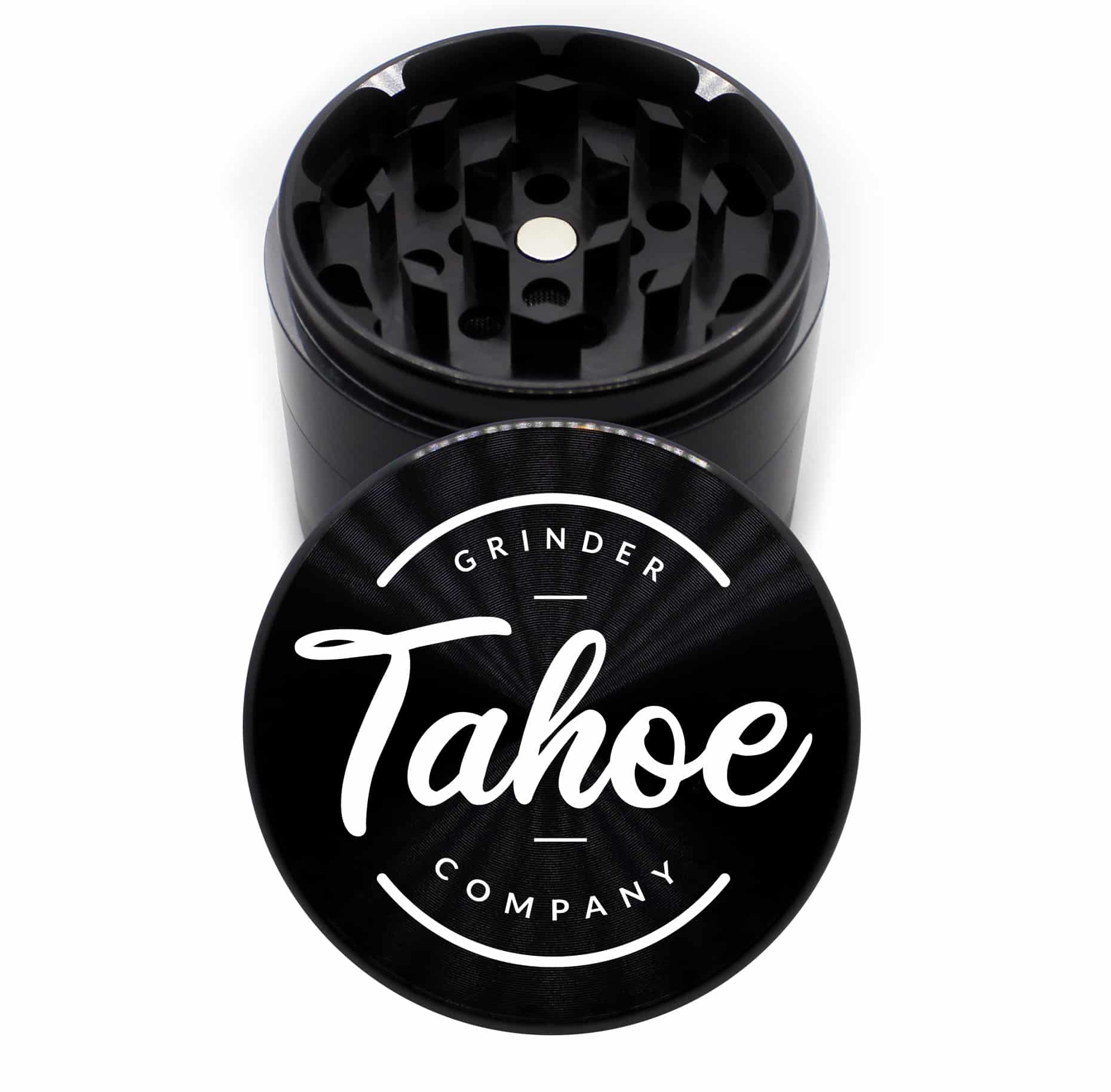 Tahoe Grinder Co Logo Round 63mm Black 4-Chamber Cannabis Grinder