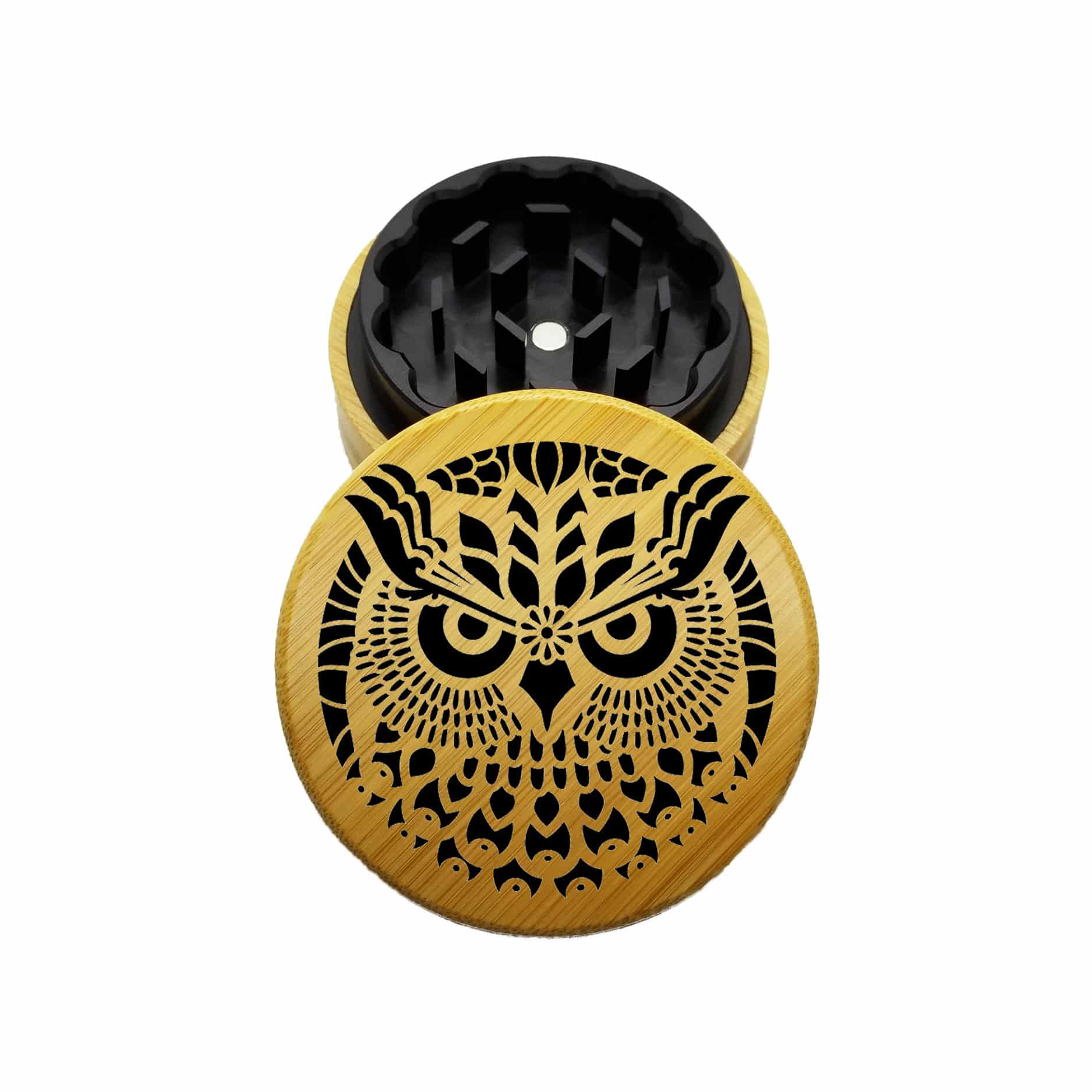 USA Made The Puck® Hybrid™ Grinder: Owl – 2.75″ Wooden Weed Grinder – Two Piece Design