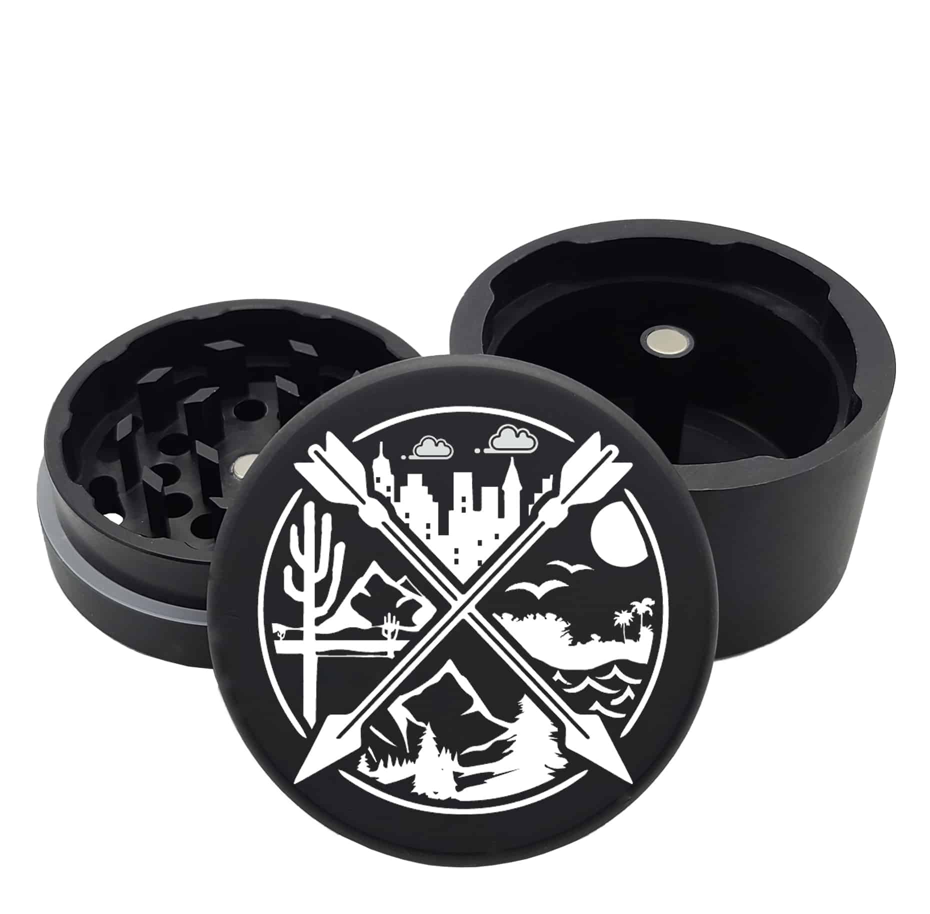 Arrow n Trees 63mm Black 4-Part Herb Grinder
