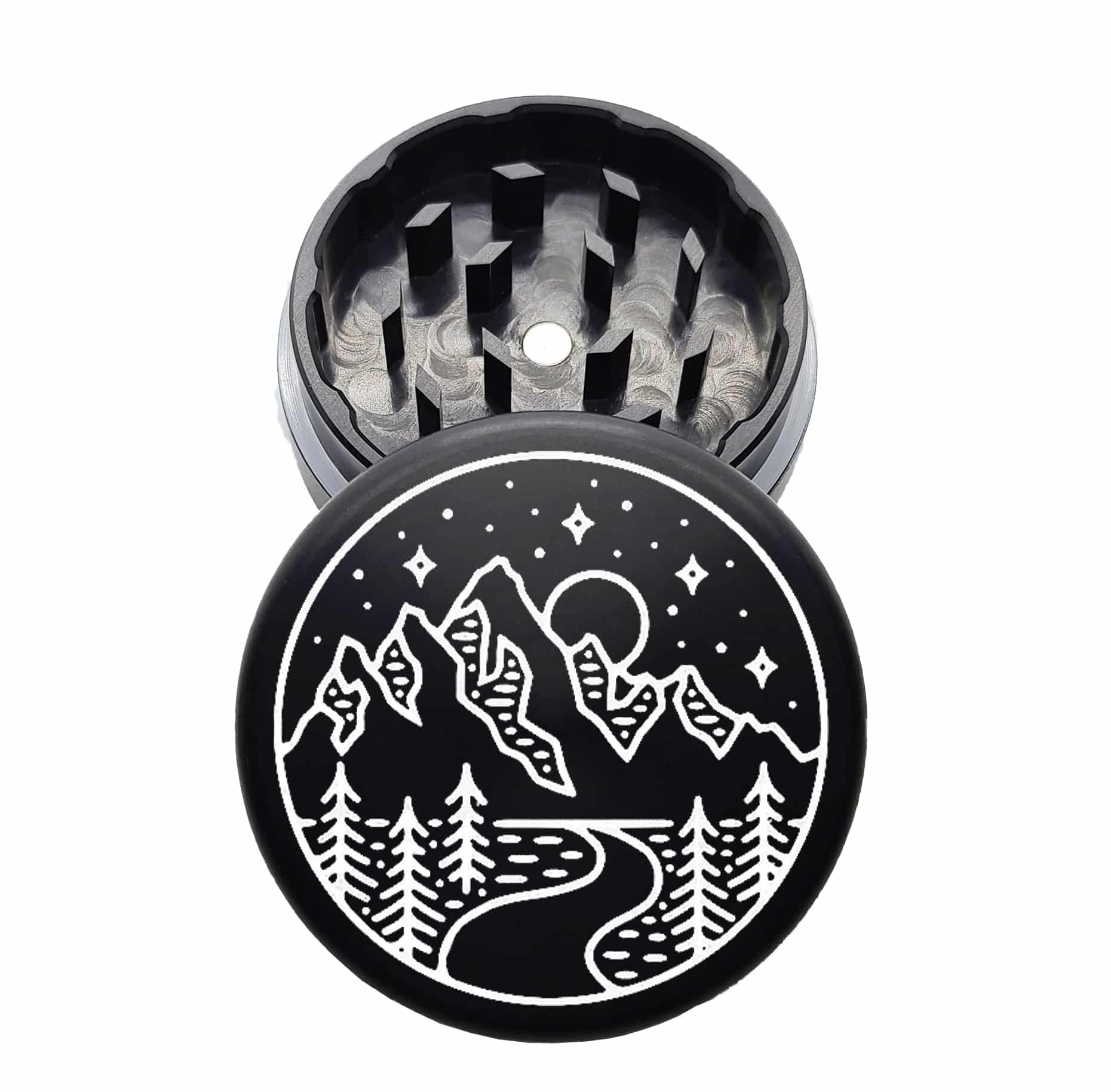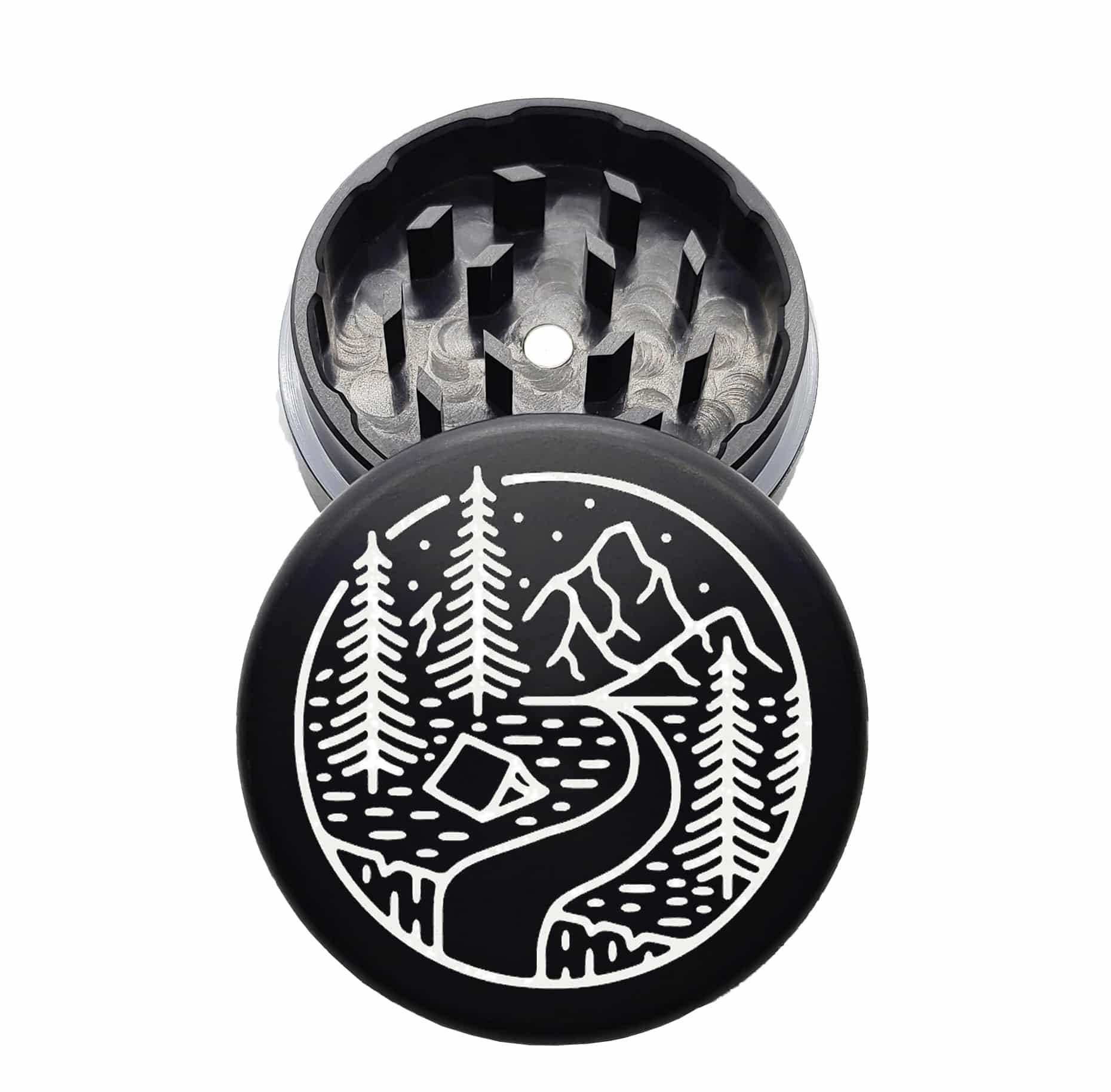 USA Made The Puck® Grinder: Cabin River – 90mm Black Metal Herb Grinder