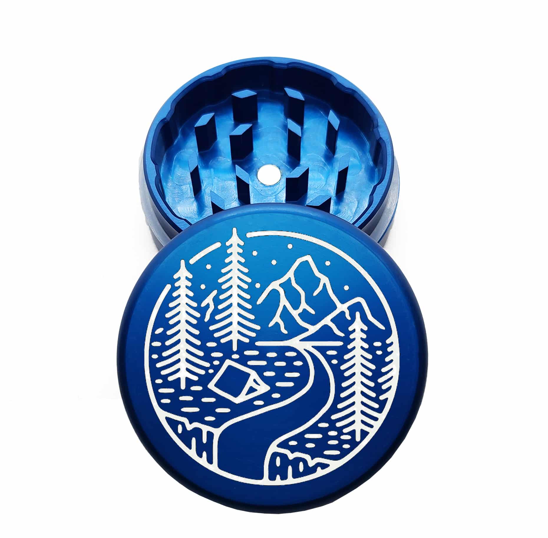 USA Made: Tent Camping, The Puck® Grinder, Gen II, Blue, 63mm, 2-Piece
