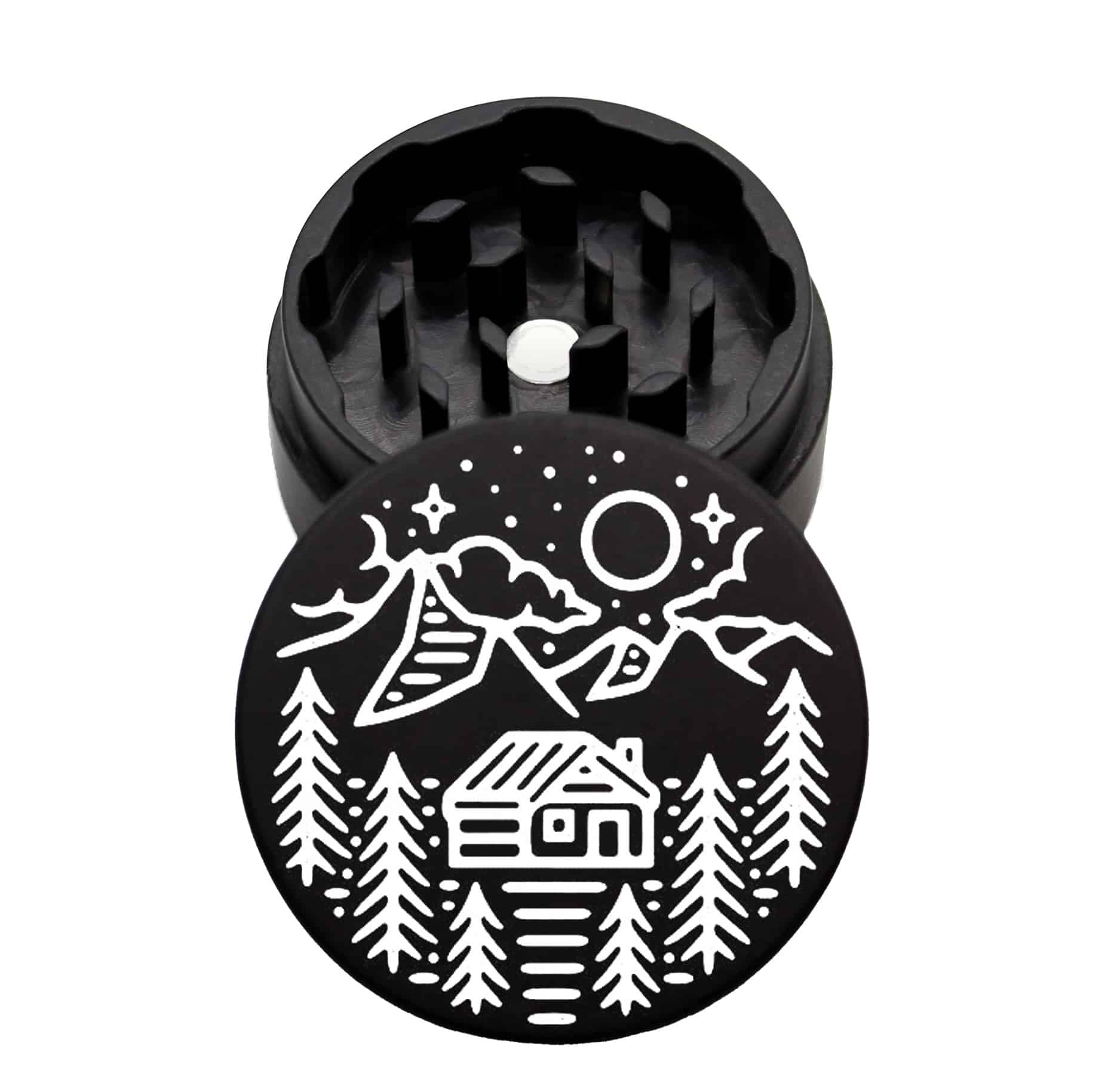 USA Made The Puck® Grinder: Cabin Trees, Black, 1.750 [45mm], 2 Piece