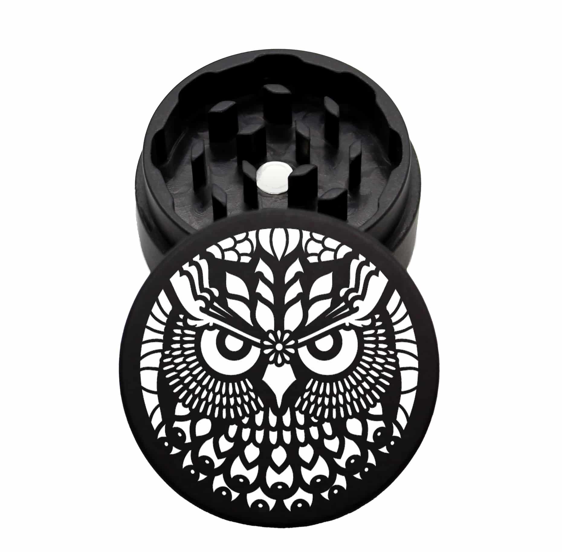 USA Made The Puck® Grinder: Horned Owl Mandala, 1.750 [45mm], Black, 2 Piece