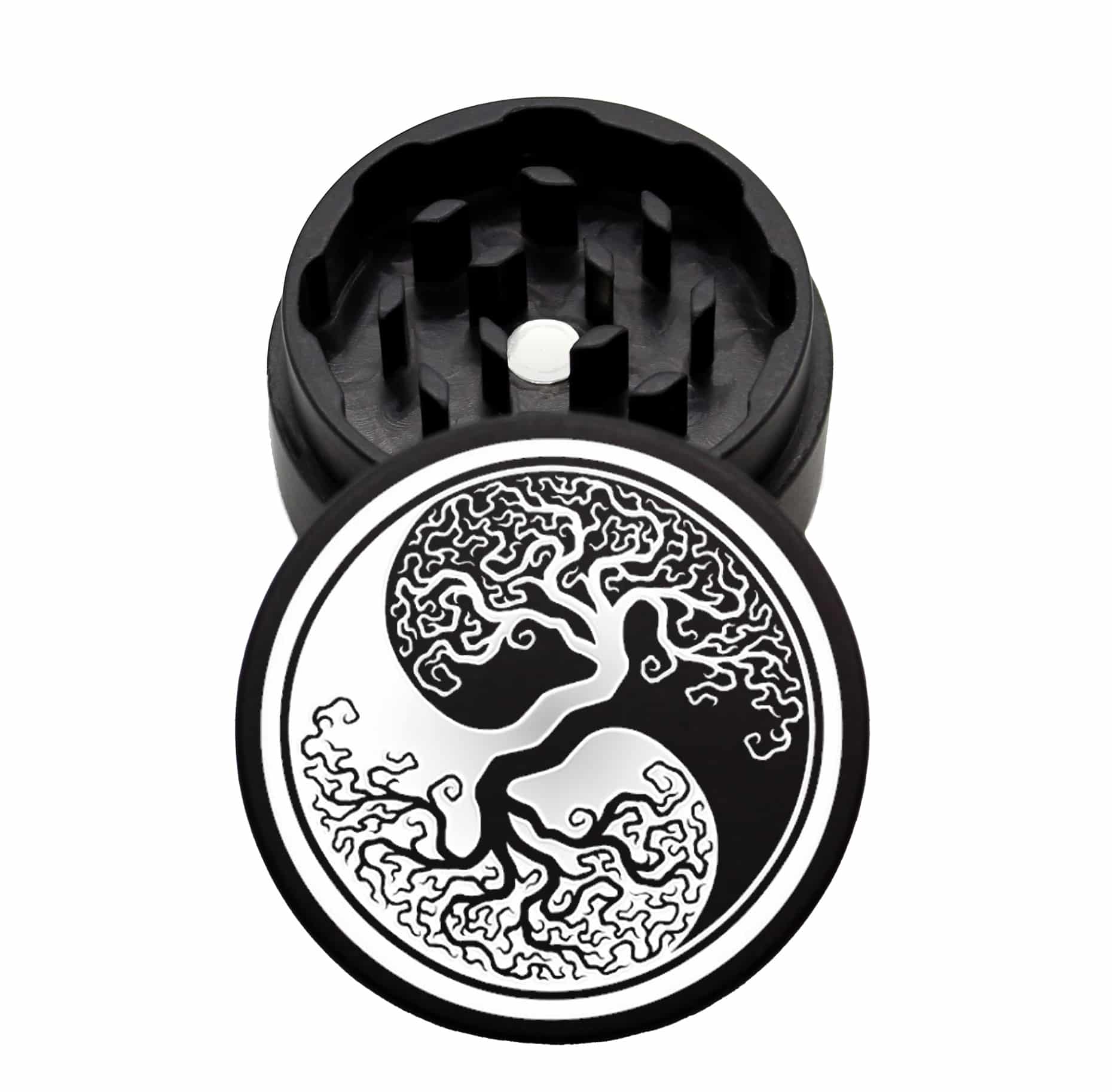 USA Made The Puck® Grinder: Yin Yang & Tree Of Life, Black, 1.750 [45mm], 2 Piece