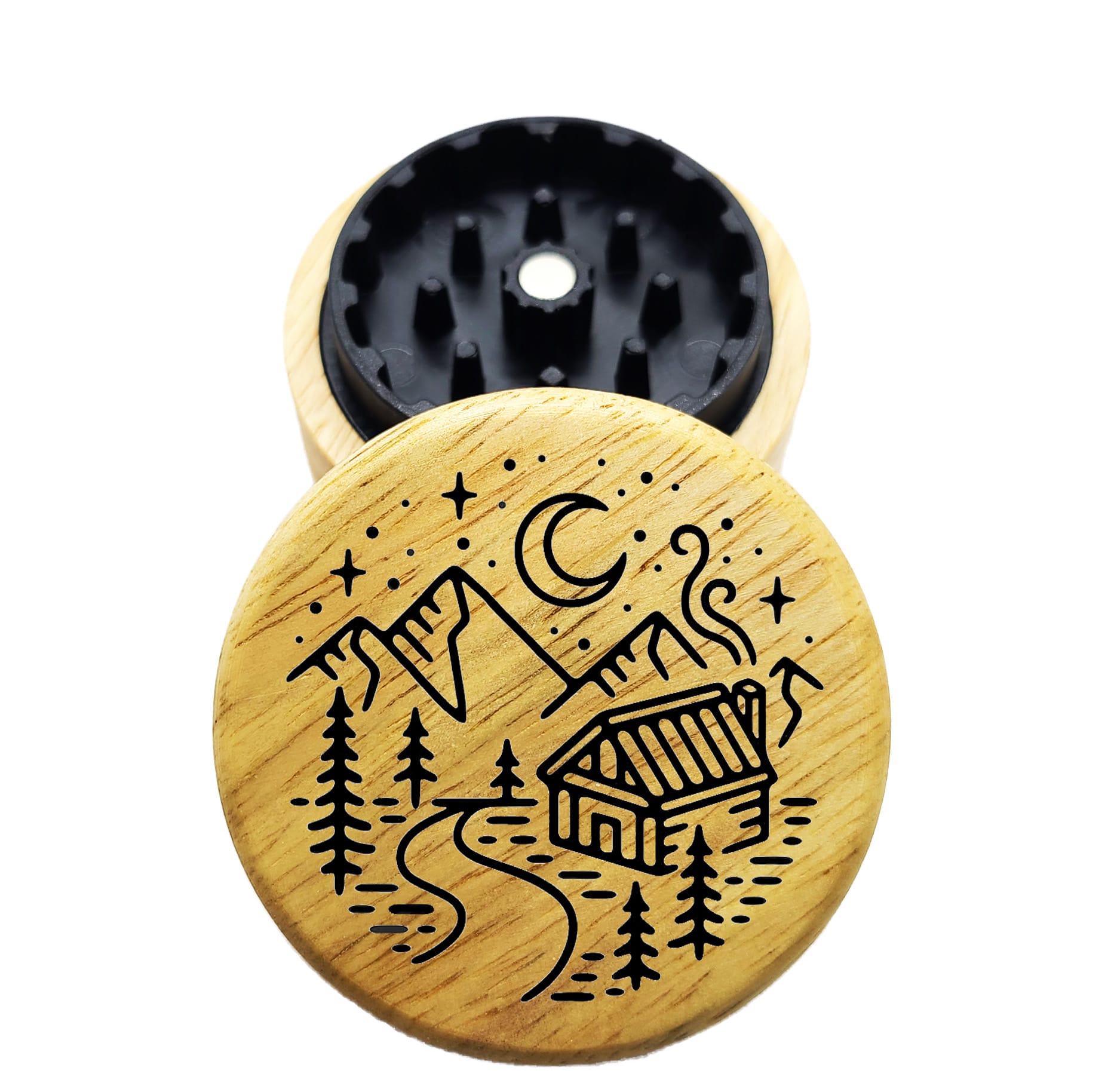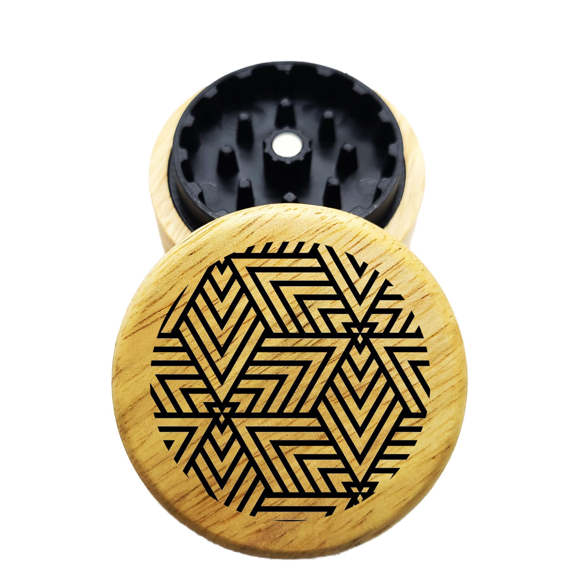 The Hybrid™ Mini Grinder: Star Mandala – 2.3″ Wood Top Herb Grinder – Mini 2PC
