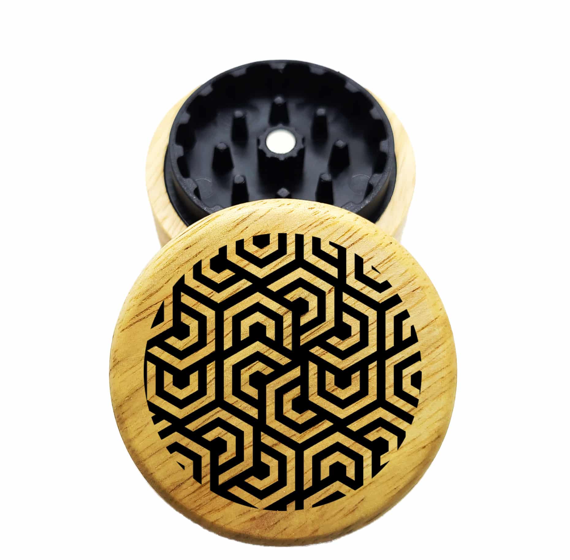The Hybrid™ Mini Grinder: Web Mandala – Mini Wooden Herb Grinder 2.3″ Two Piece