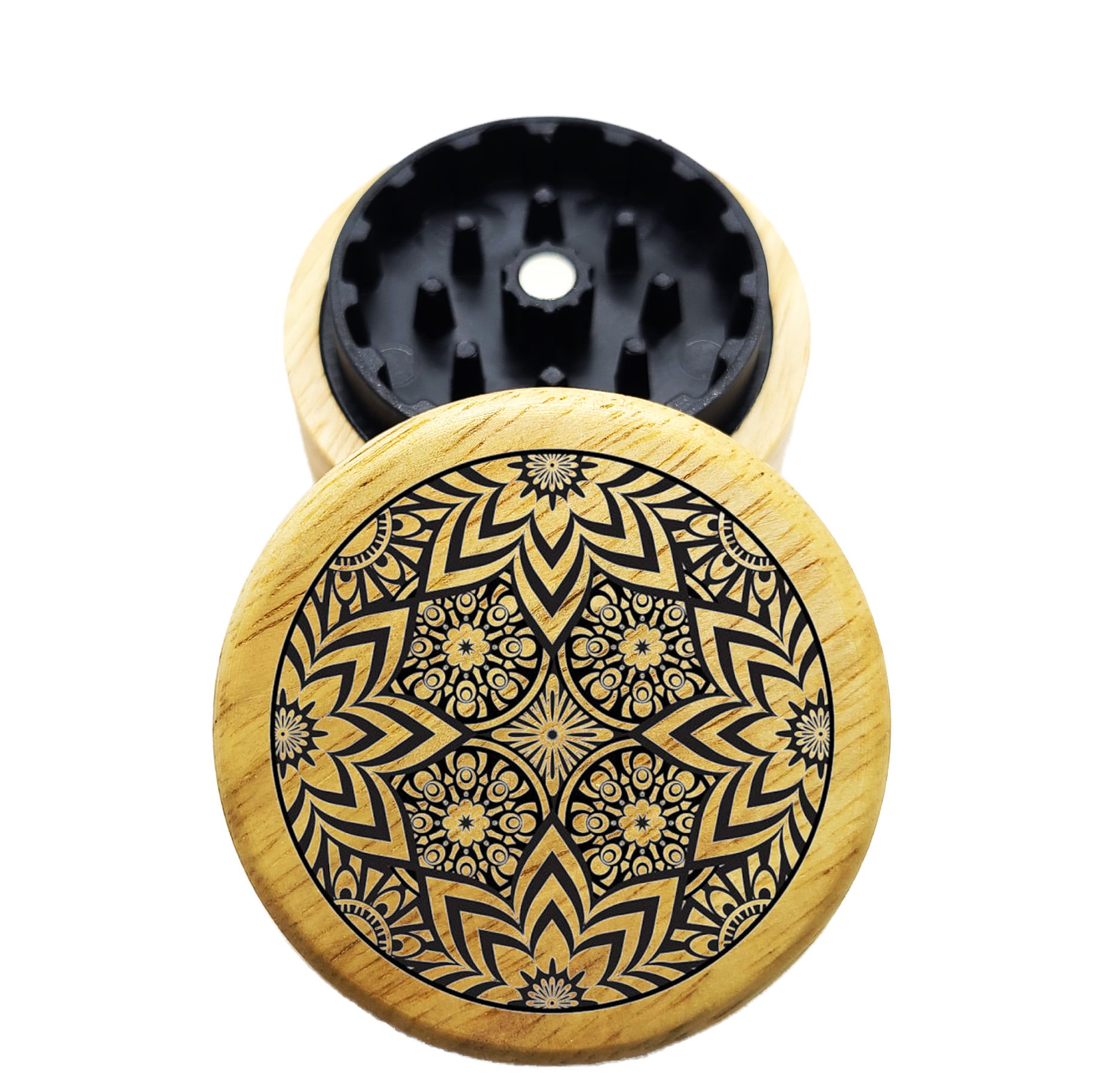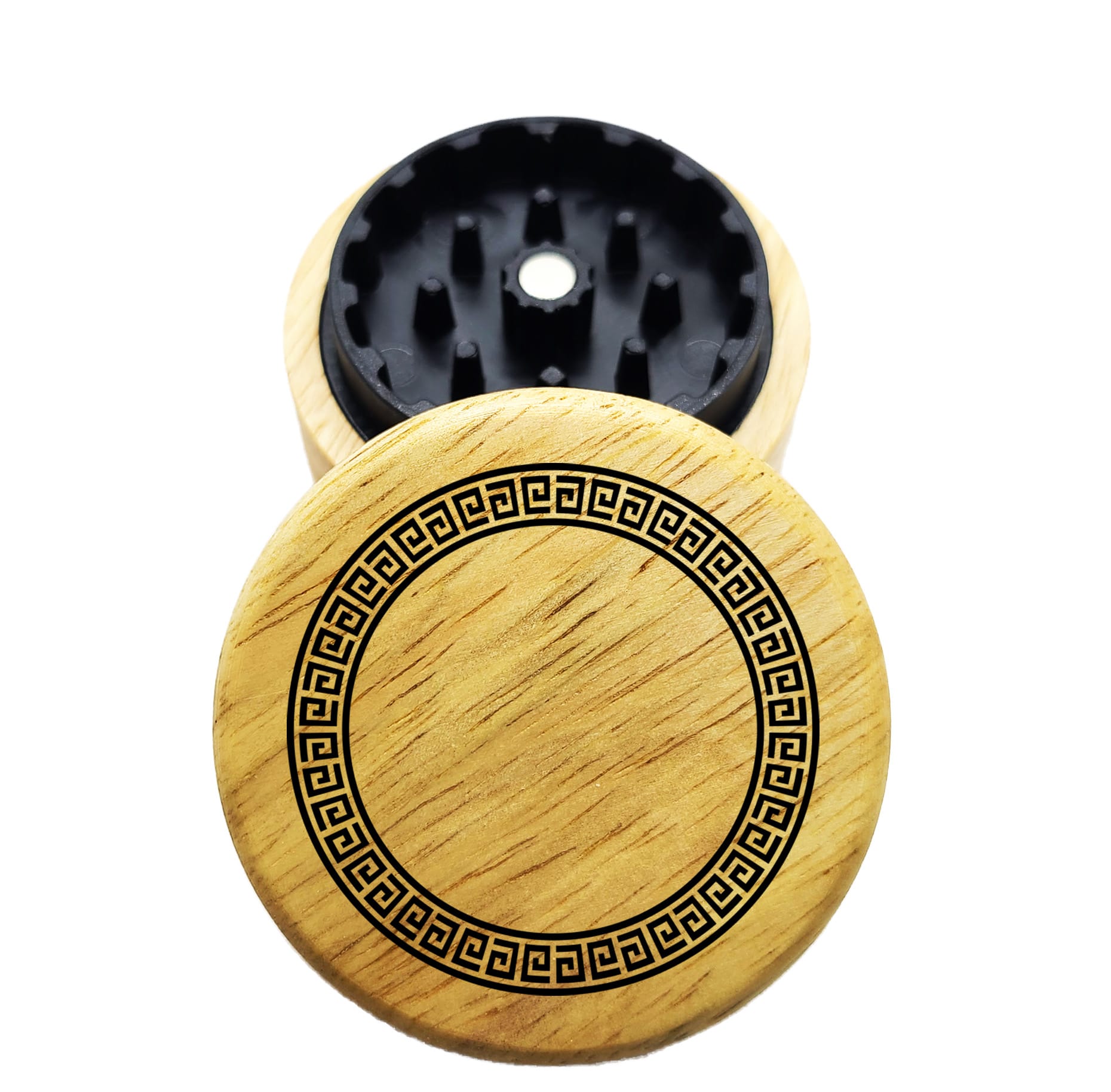 The Hybrid™ Mini Grinder: Aztec – Mini Wood Top Weed Grinder – 2.3″ Two Piece