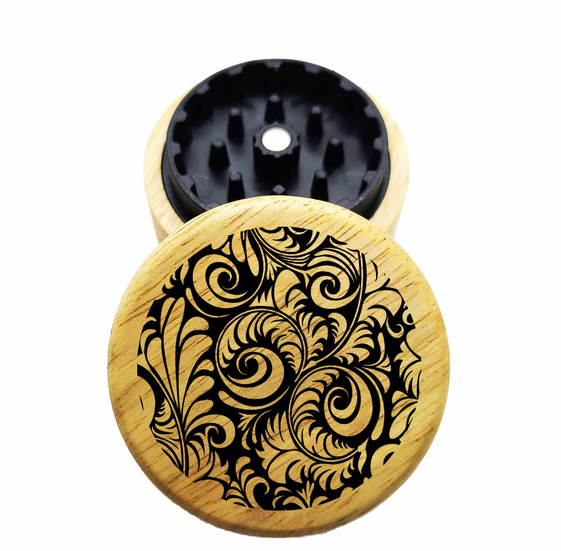 The Hybrid™ Mini Grinder: The Great Wave – Wood Top Mini Weed Grinder 2.3″ Two Piece