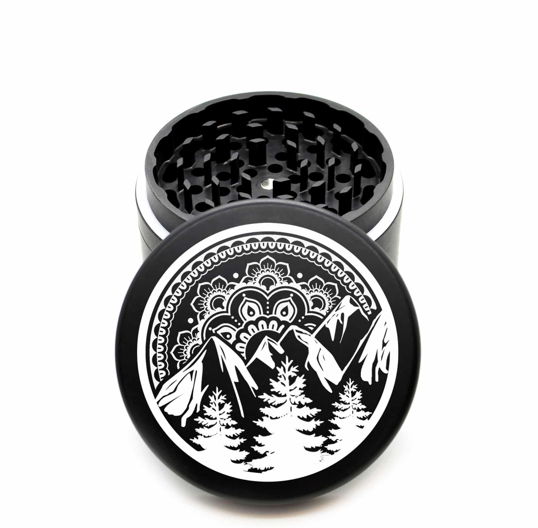 USA Made The Puck® Grinder: Tahoe Mandala Sunset – Large 90mm Black Cannabis Grinder