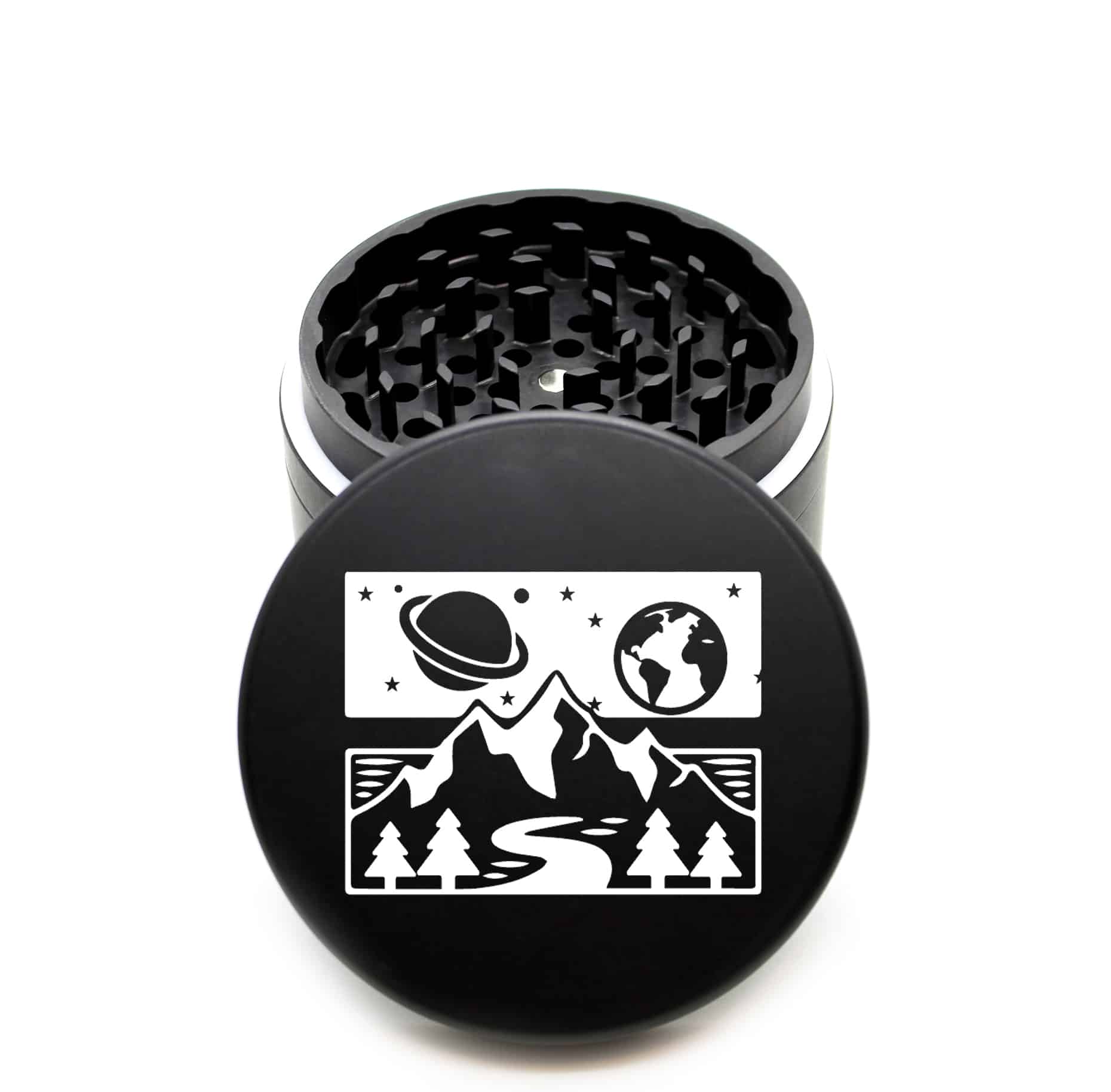 USA Made The Puck® Grinder: Space Mountain – 90mm Black Metal Herb Grinder