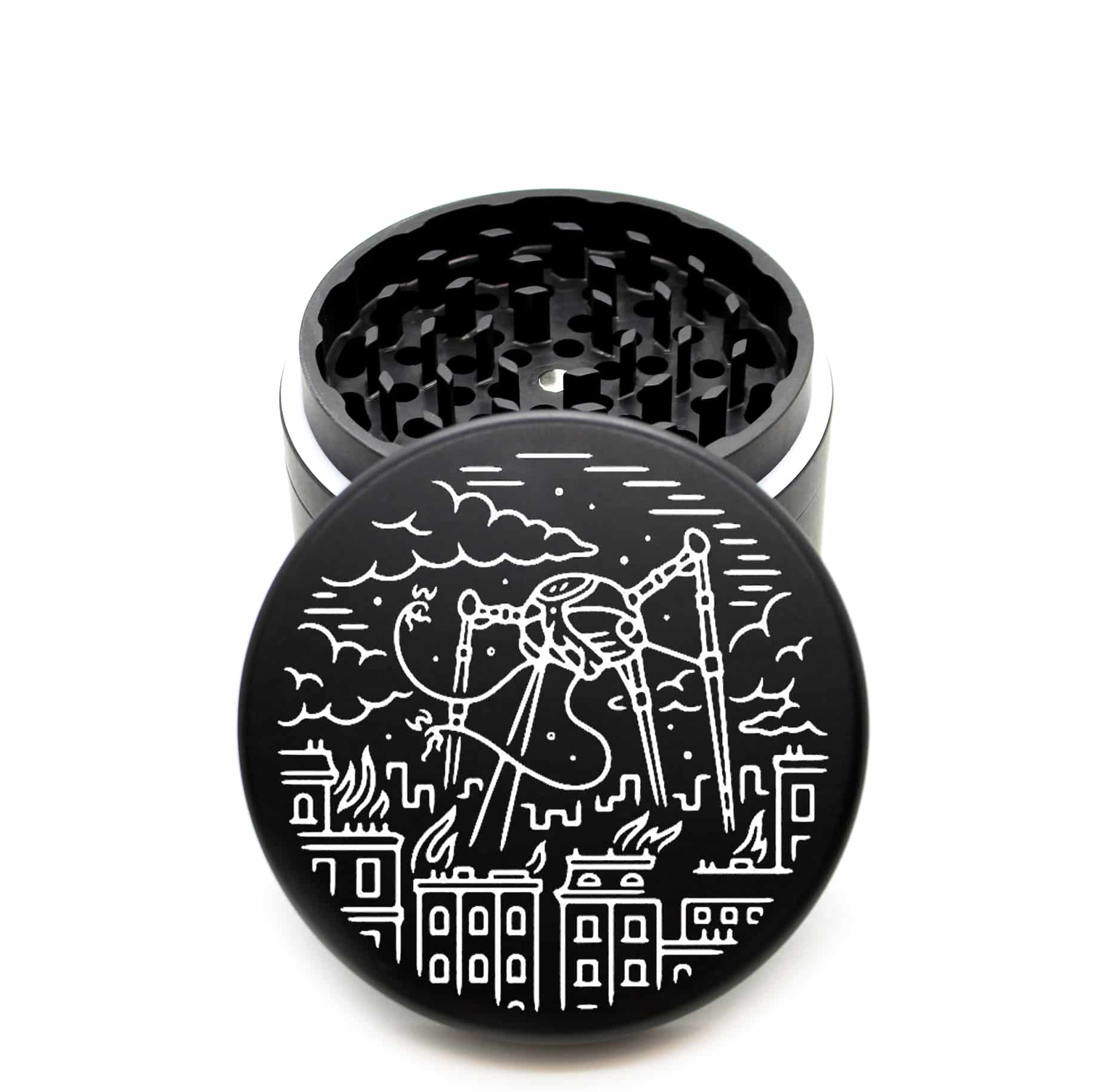 USA Made The Puck® Grinder: Aliens – 90mm Black Metal Herb Crusher