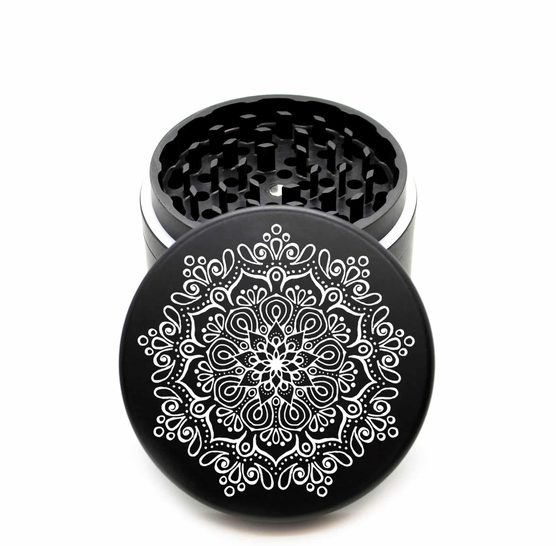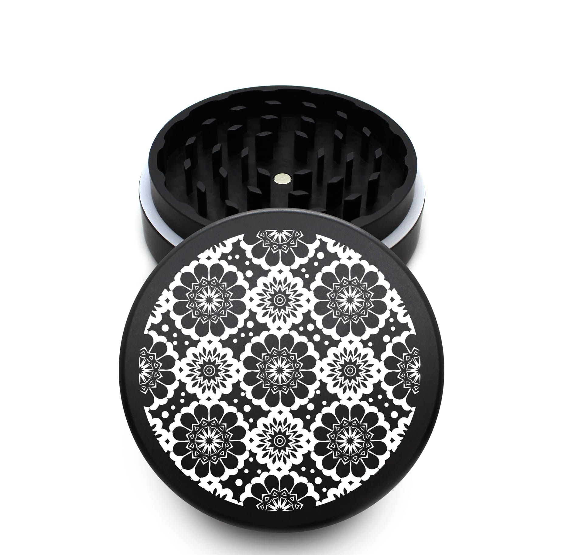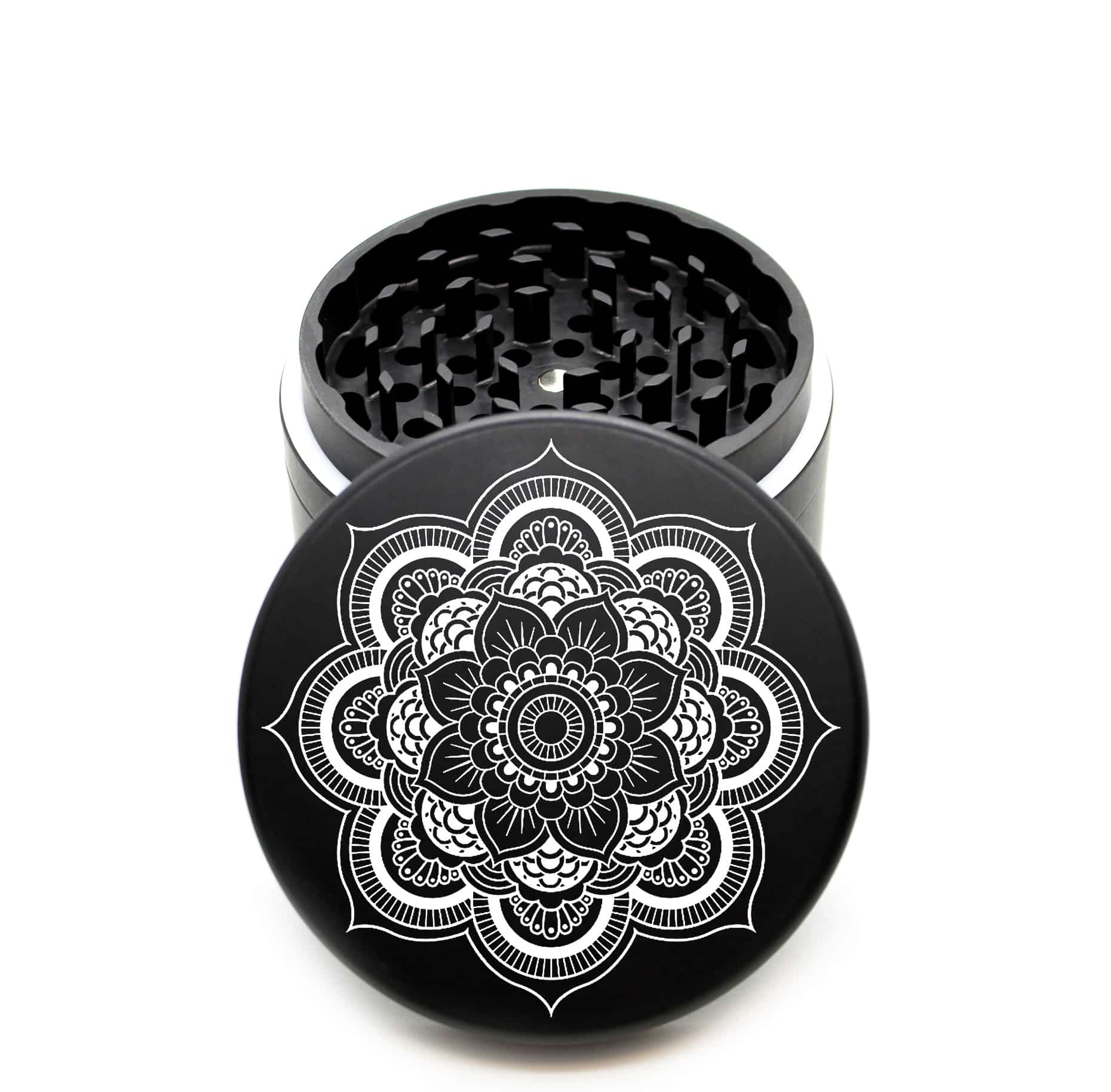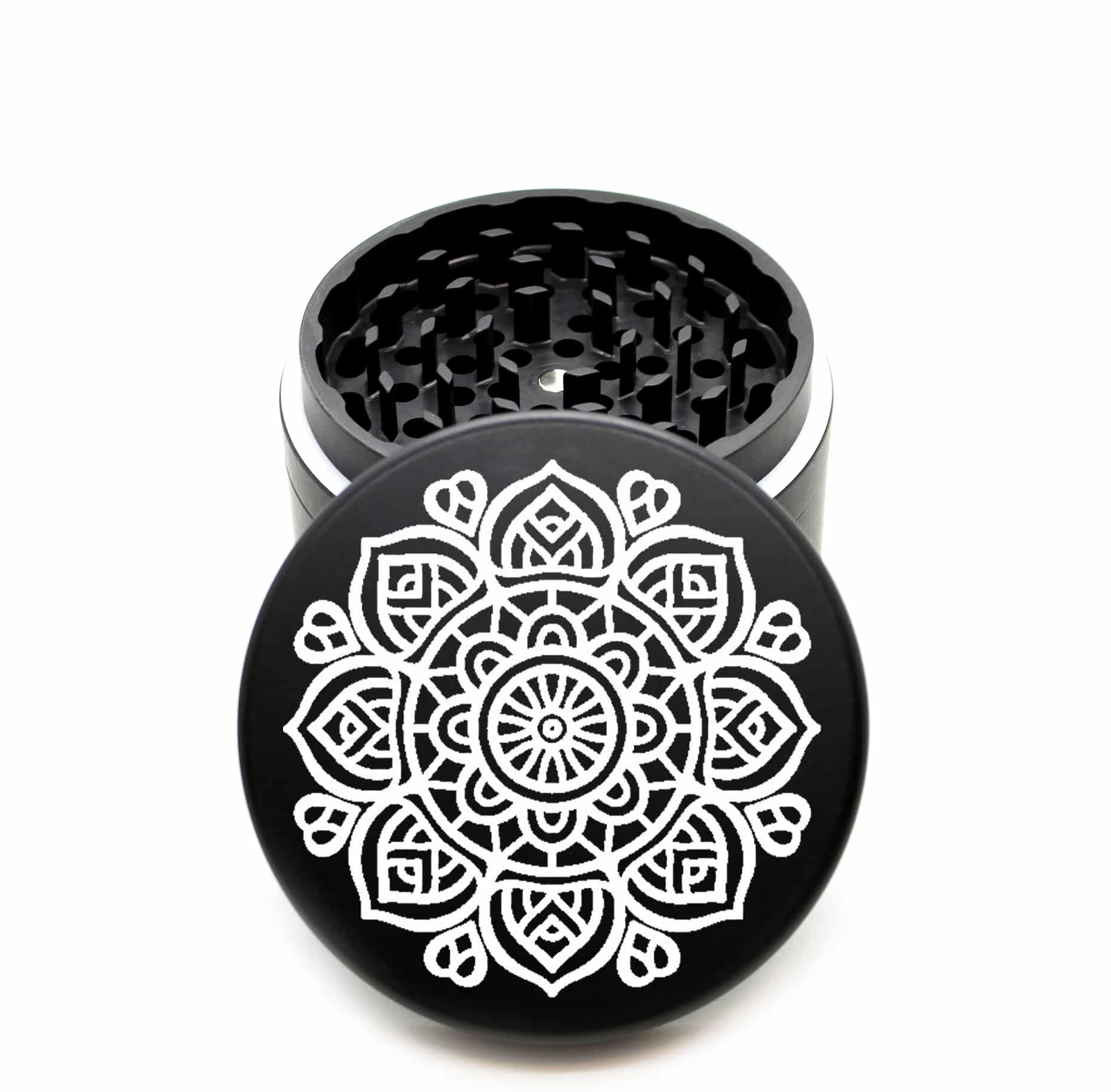 USA Made The Puck® Grinder: Dahlia Mandala – Heavy Duty 90mm Black Herb Grinder