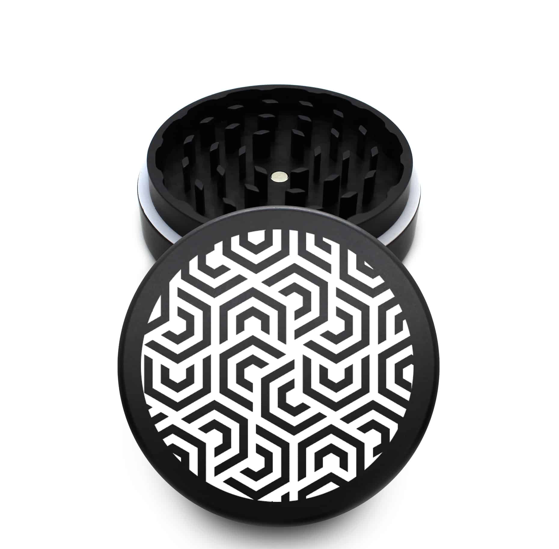 USA Made The Puck® Grinder: Hexomatic, Black, 3.500 inch [90mm], 2 Piece