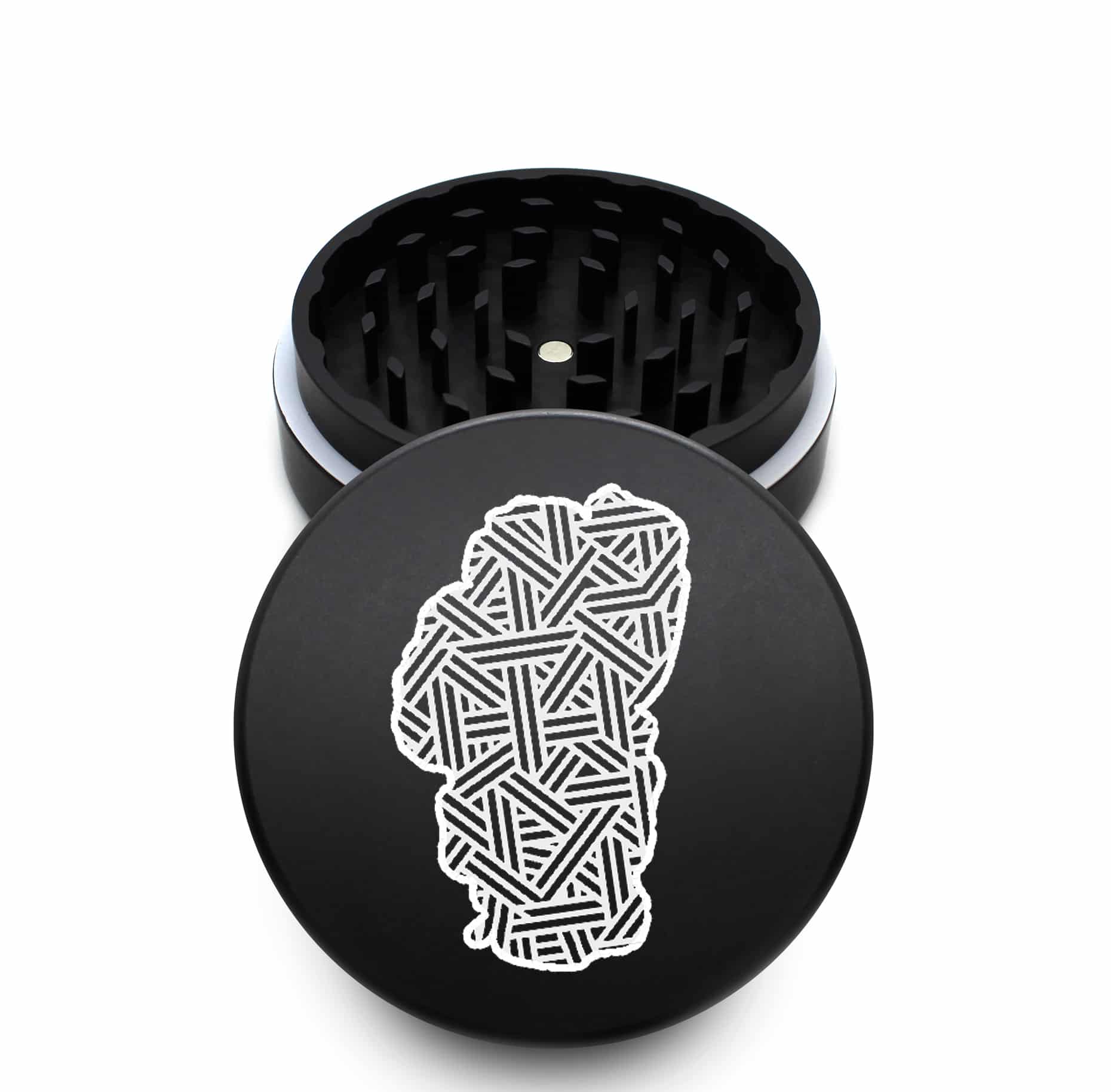 USA Made The Puck® Grinder: Web Mandala – 90mm Black Premium Cannabis Grinder (3-Piece)