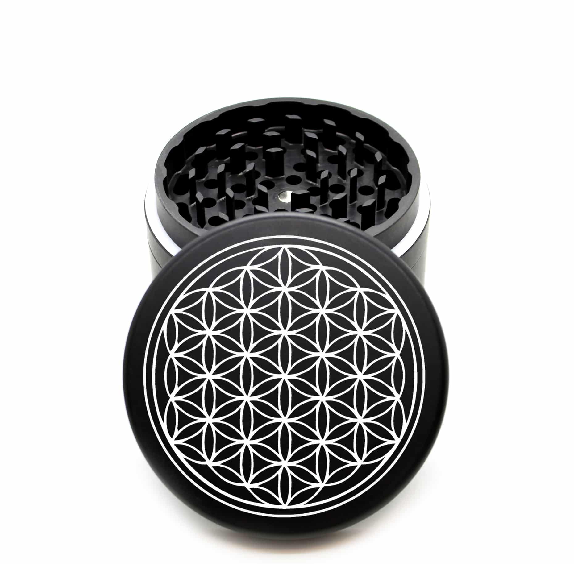 USA Made The Puck® Grinder: Flower of Life – Large 90mm Black 3-Piece Weed Grinder
