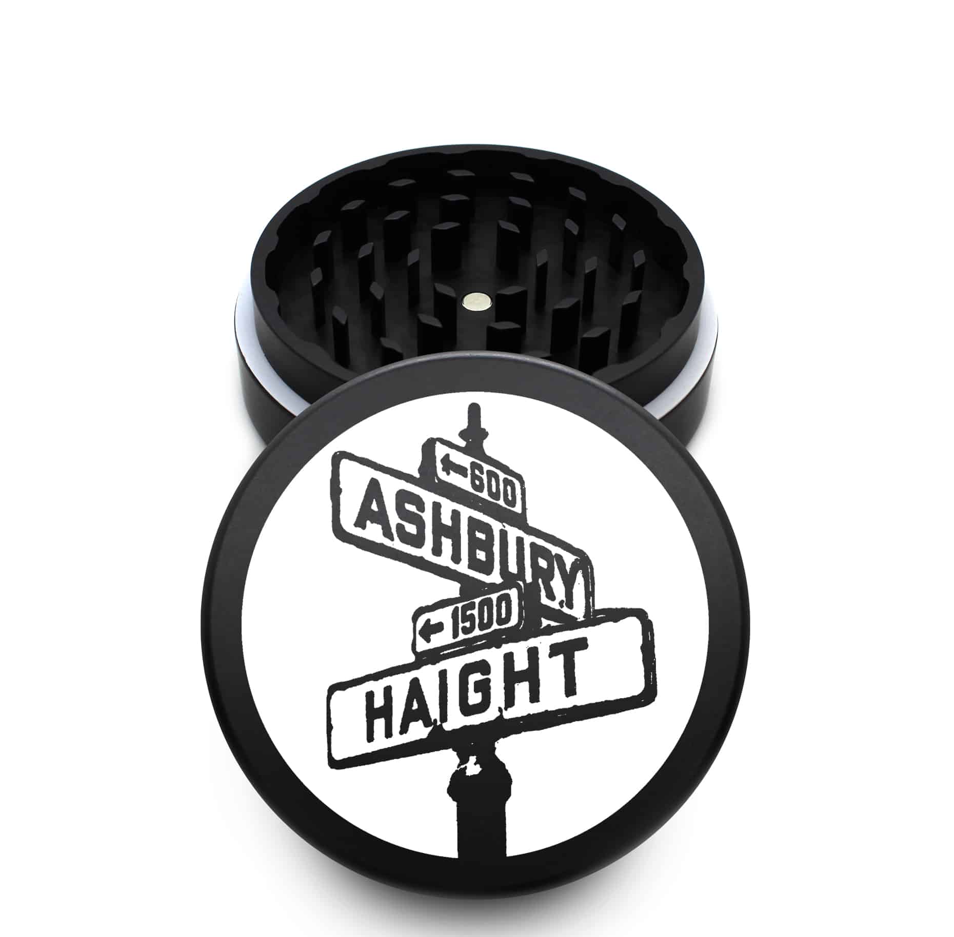 USA Made The Puck® Grinder: Haight x Ashbury San Francisco, Black, 3.500 inch [90mm], 2 Piece