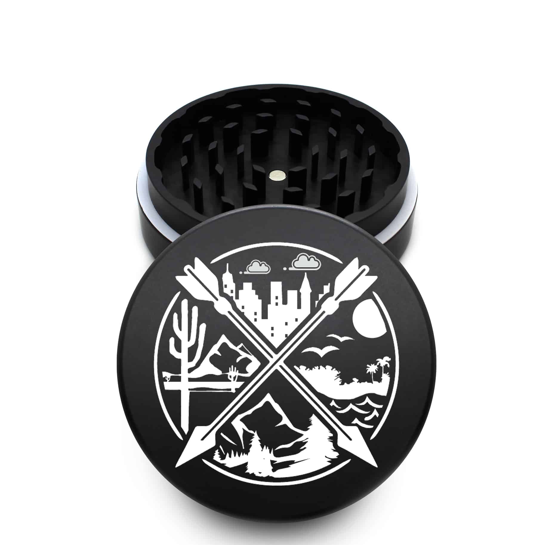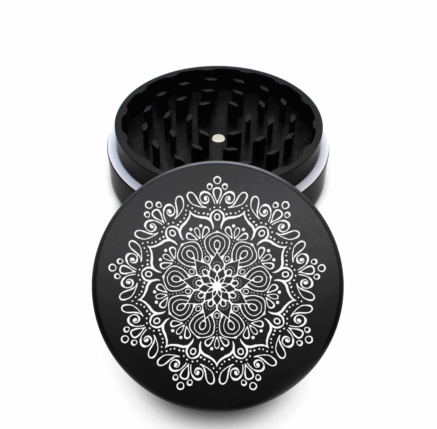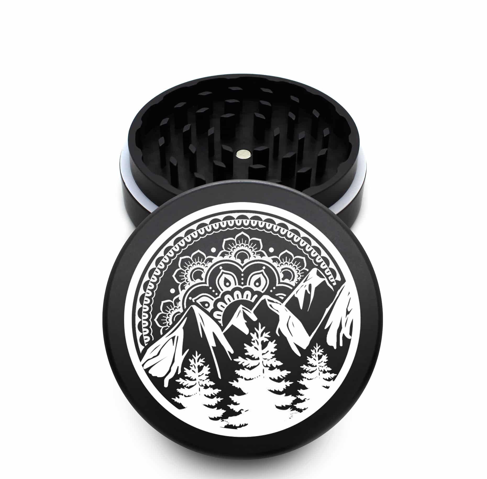 USA Made The Puck® Grinder: Tahoe Mandala Sunset, Black, 3.500 inch [90mm], 2 Piece