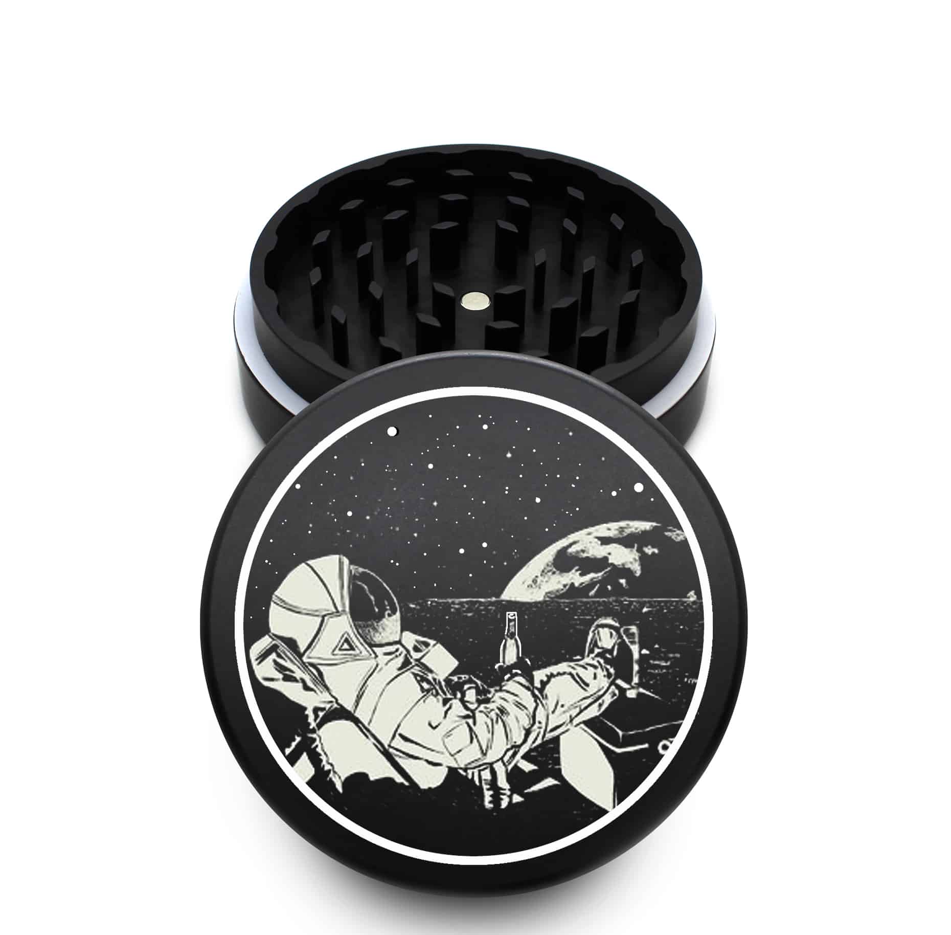 USA Made The Puck® Grinder: PBRS on the Moon, Black, 3.500 inch [90mm], 2 Piece