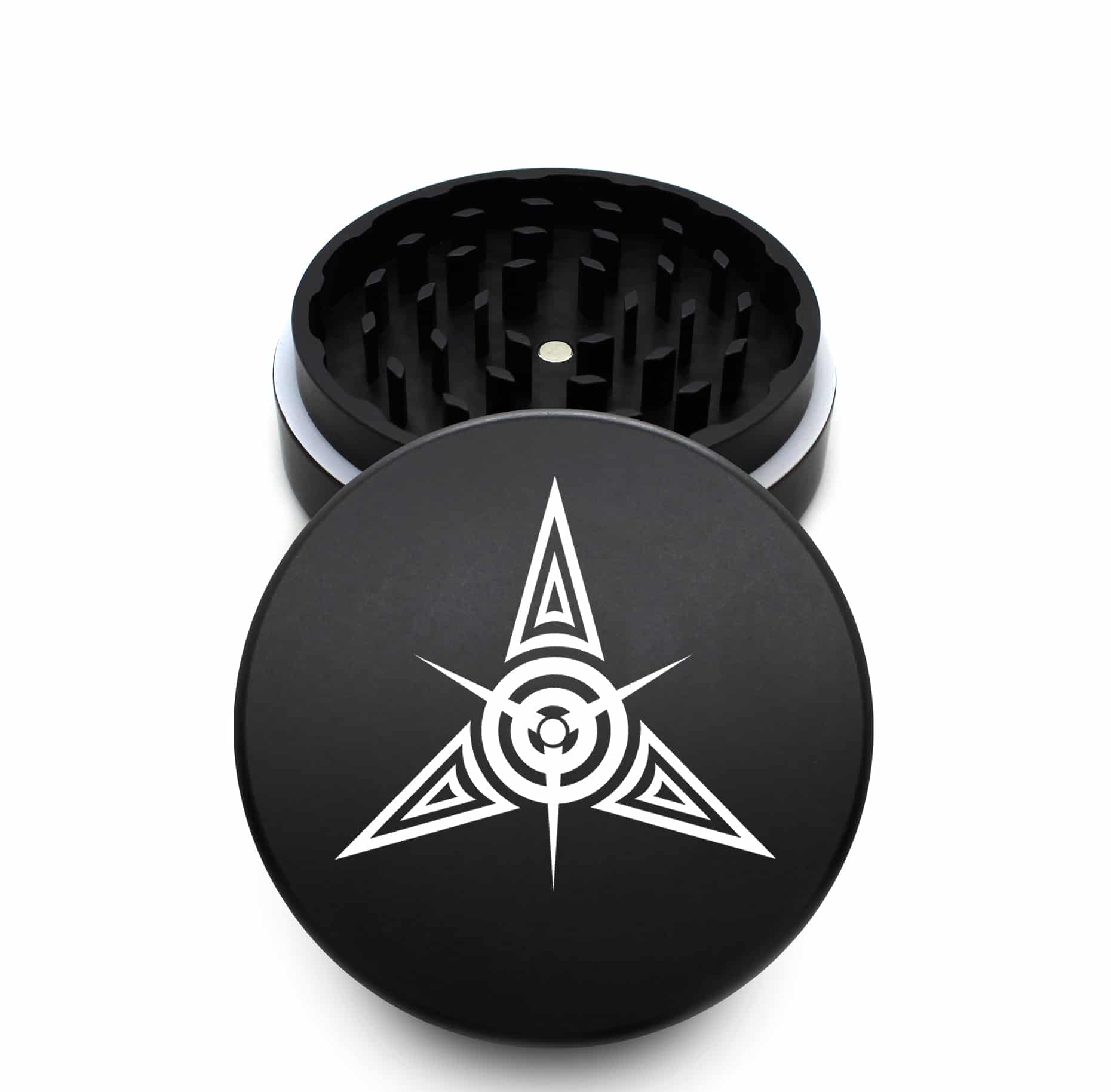 USA Made The Puck® Grinder: Tribal Star, Black, 3.500 inch [90mm], 2 Piece