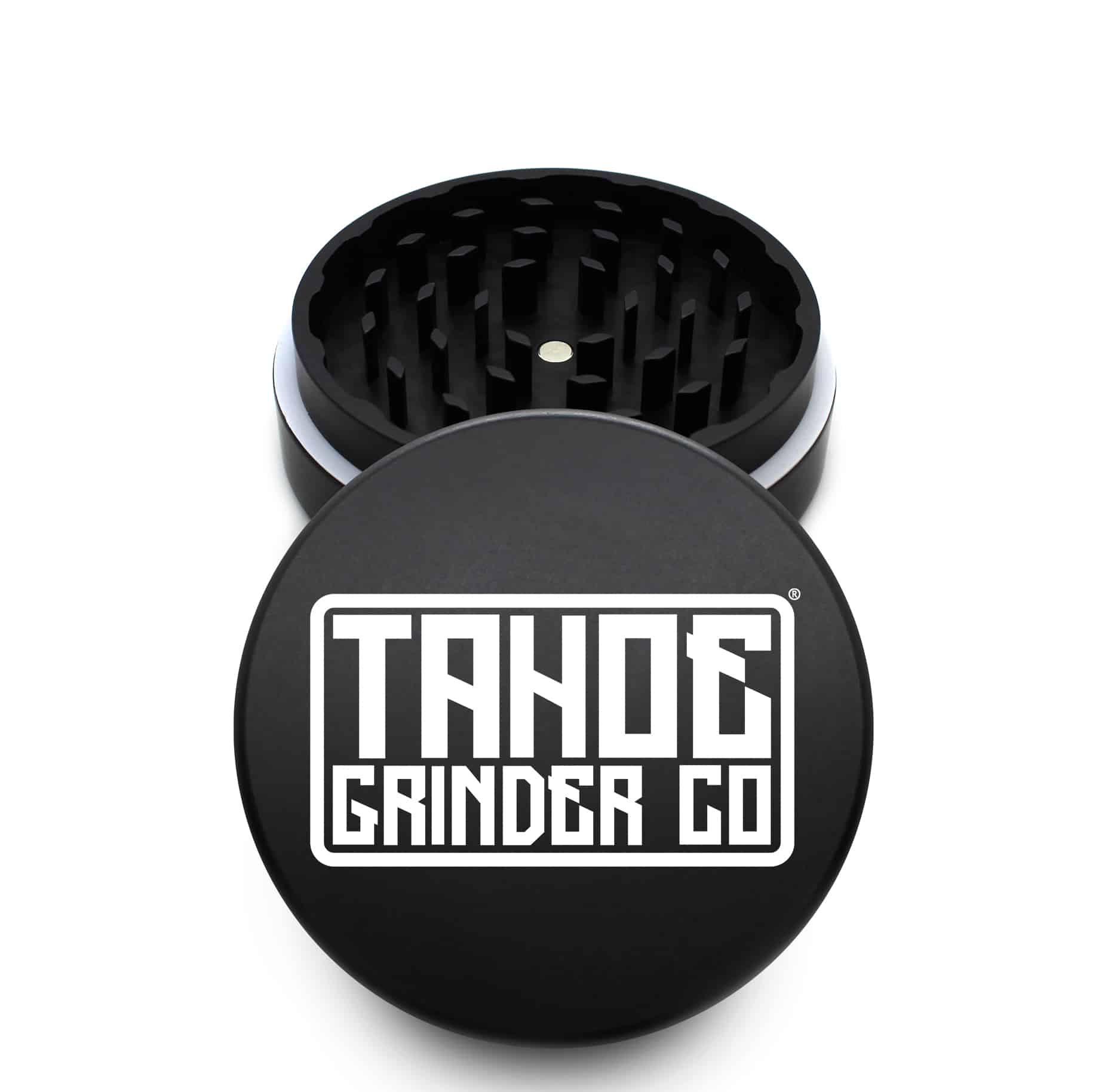 USA Made The Puck® Grinder: Tahoe Grinder Co Round Logo, Black, 3.500 inch [90mm], 2 Piece