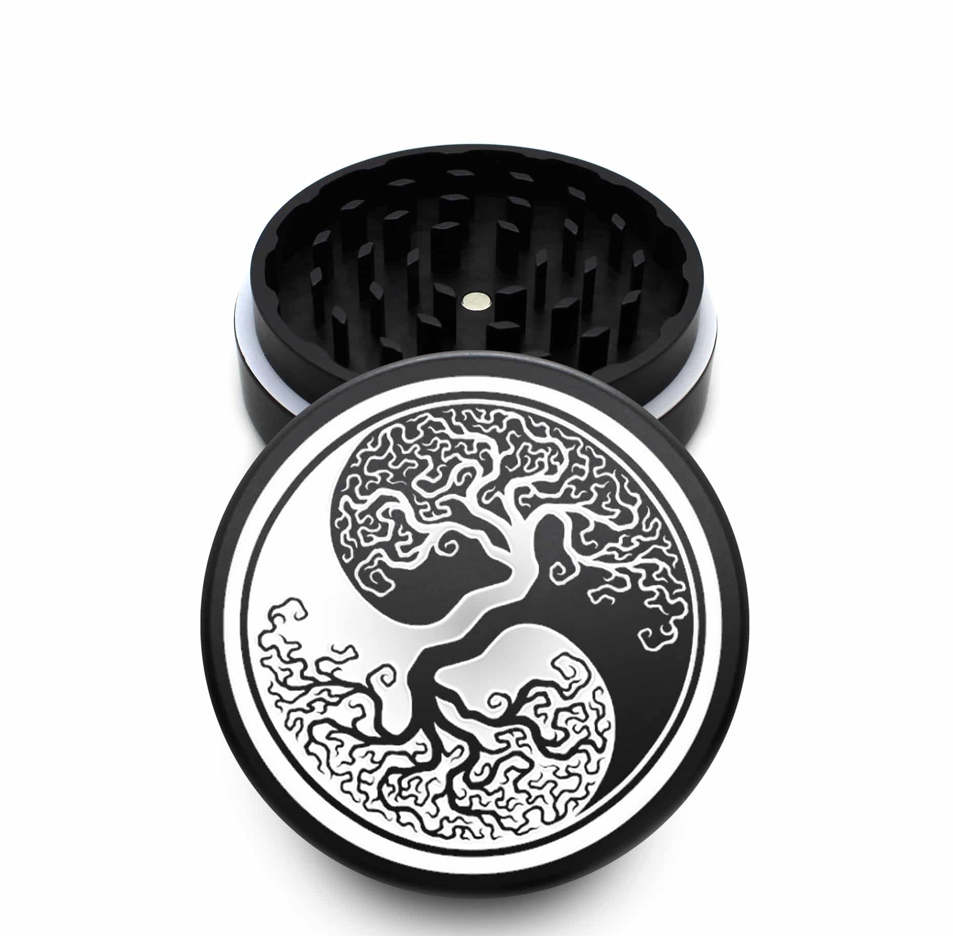 USA Made The Puck® Grinder: Yin Yang & Tree Of Life, Black, 3.500 inch [90mm], 2 Piece