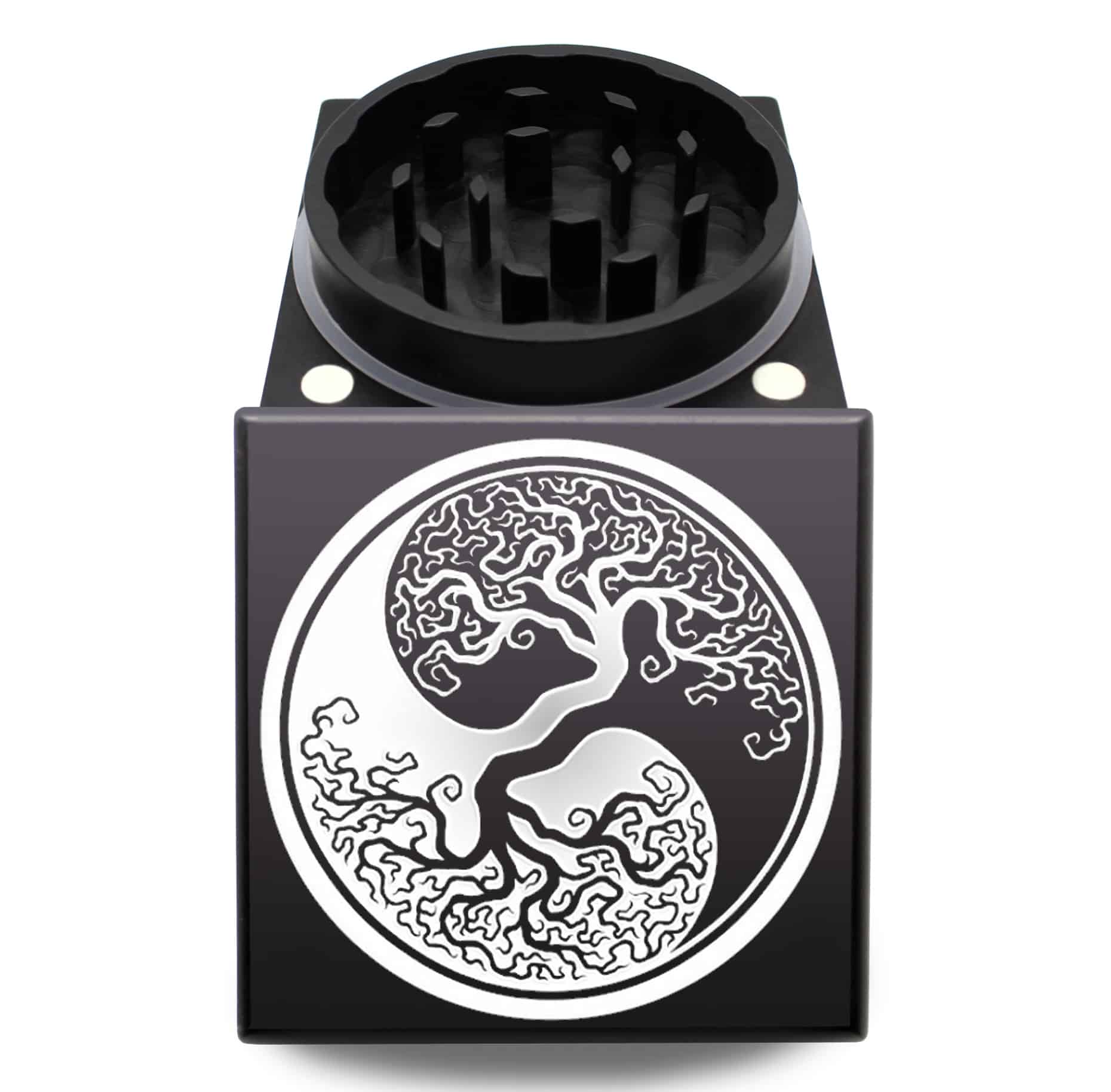 Yin Yang Tree of Life American Crafted Square Herb Grinder – Top Rated 65mm Weed Mill