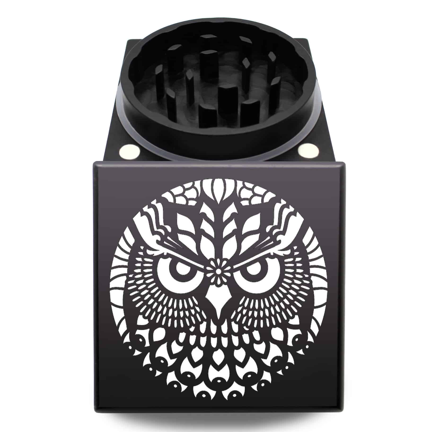 Horned Owl Mandala American Made Square Herb Grinder – Heavy Duty 2pc Weed Crusher
