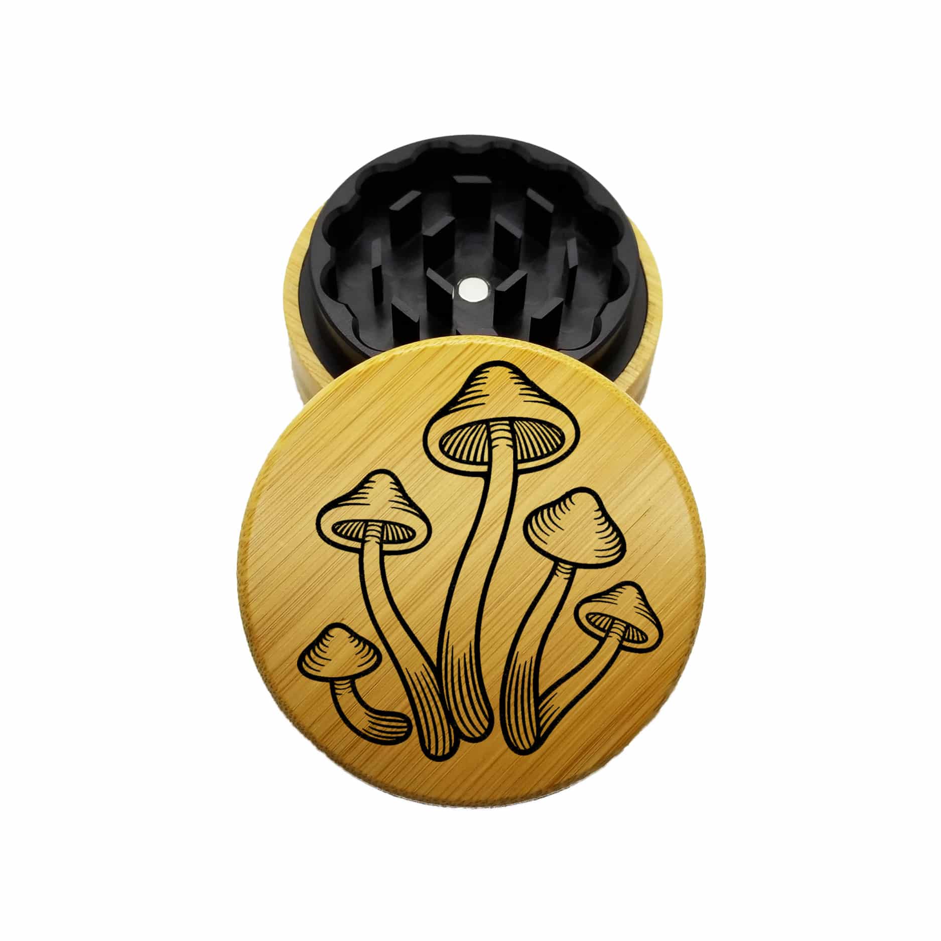 USA Made The Puck® Hybrid™ Grinder: Mushrooms – 70mm Wooden Herb Grinder | 2-Piece Grinder
